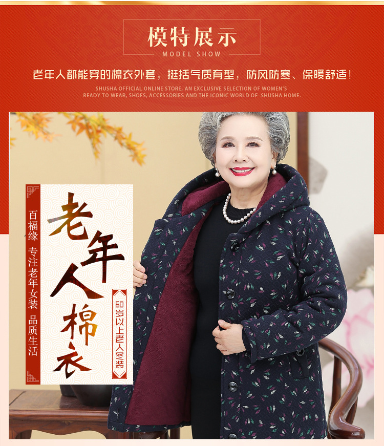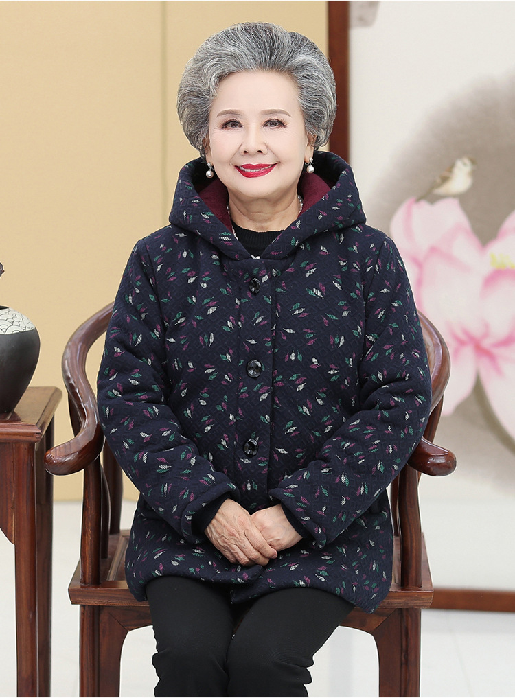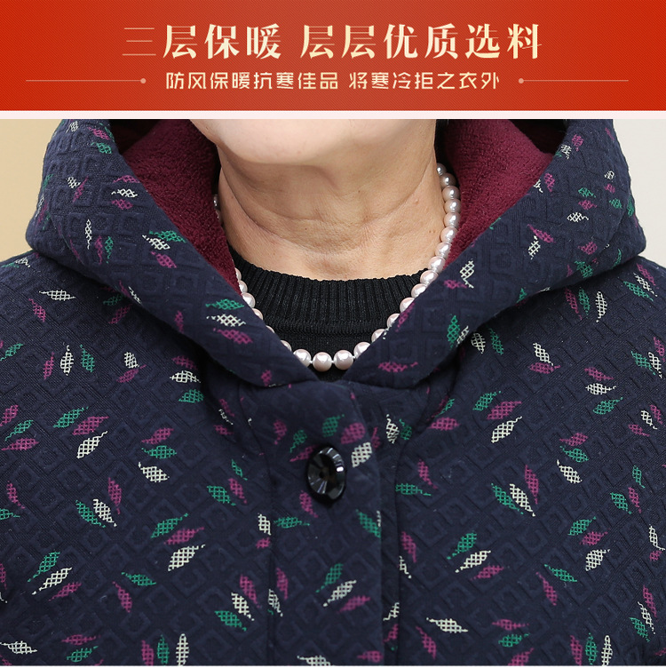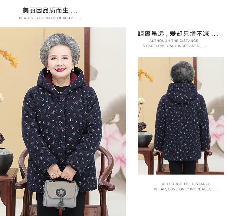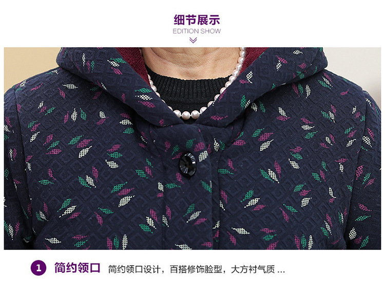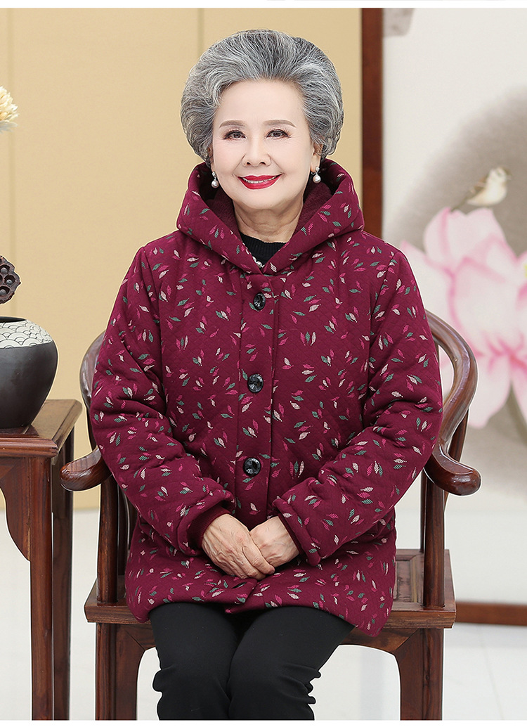 【新款中老年人棉衣女奶奶冬装】加绒加厚外套老太太衣服妈妈连帽棉袄