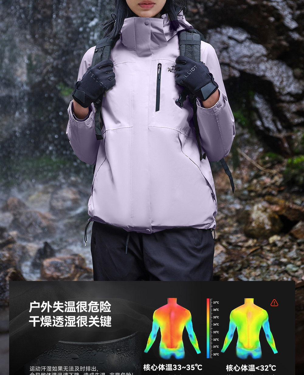 【岩壳】伯希和户外硬壳冲锋衣冬季新款全天候防风防水徒步登山服