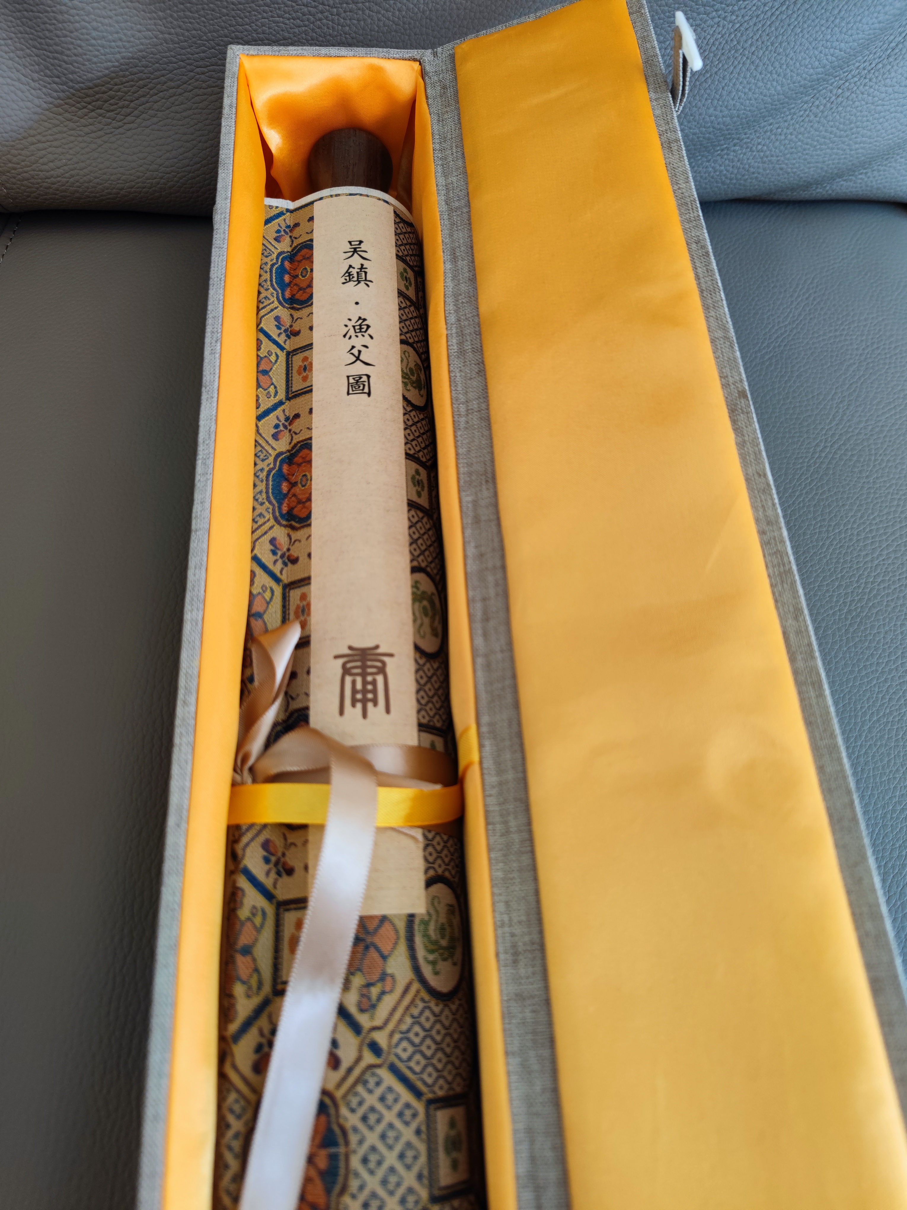 ☆ 【镜片】就是裱好的画芯,四边有绫子裱成的宽边,可以自己配画框挂起来。镜片与立轴的差别就是没有上下两个画轴。镜片的发货方式与立轴一样,卷起来装入锦盒后打包邮寄。