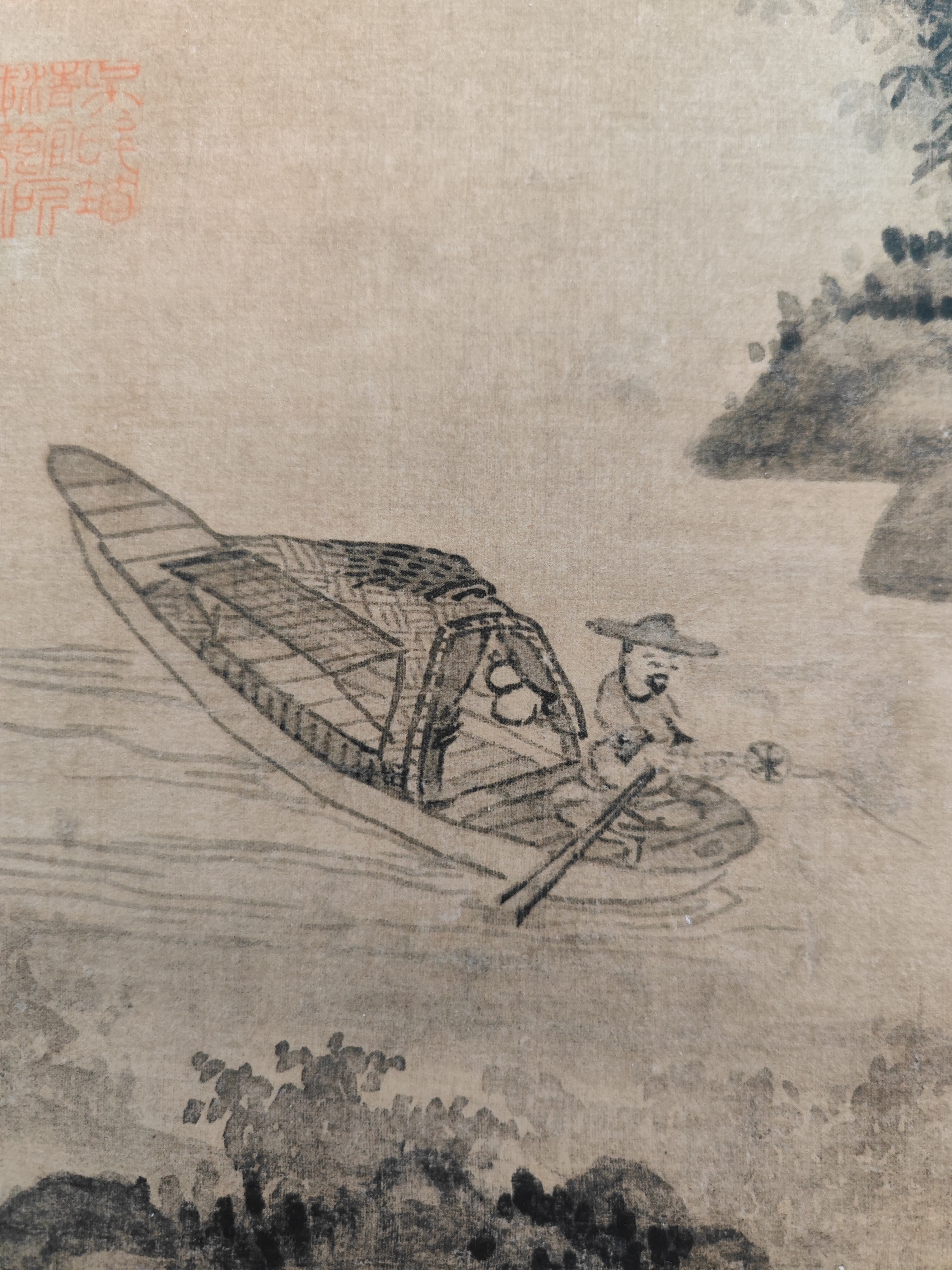 【定制书画】(元)吴镇《渔父图》绢本立轴 馆藏书画高仿复制艺术品(付款后28天内发货)