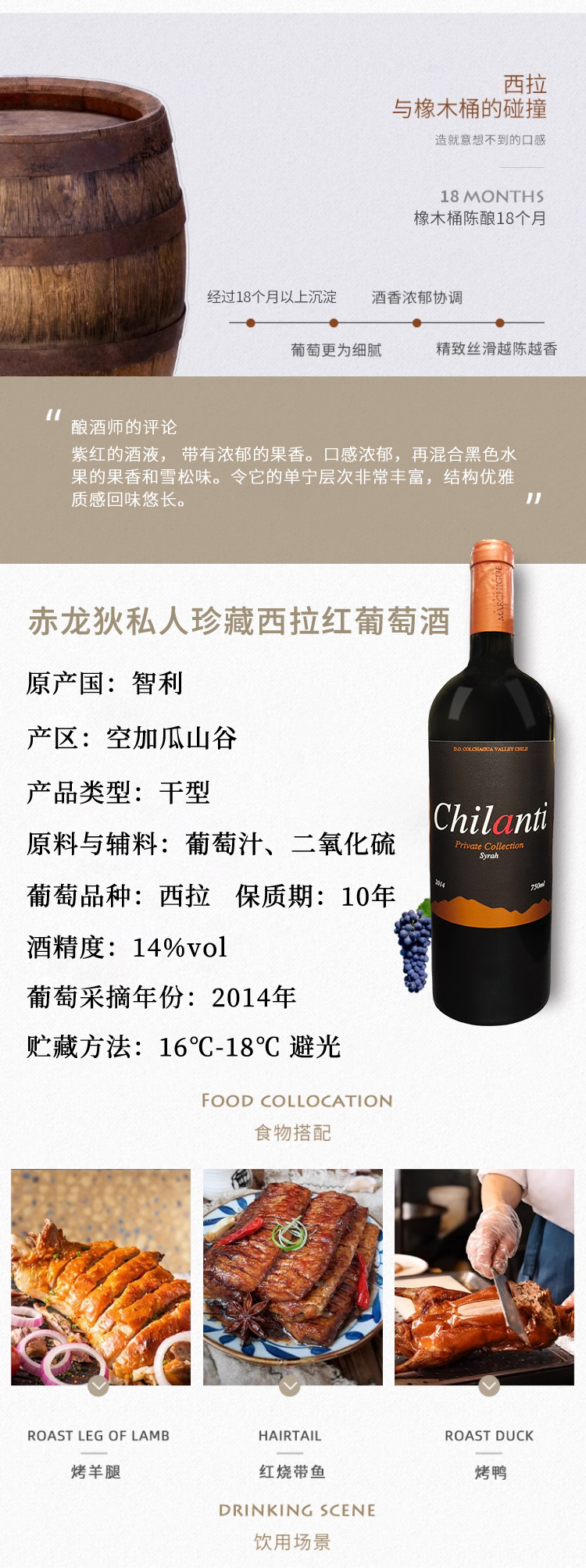 智利进口赤龙狄私人珍藏西拉红葡萄酒750ml