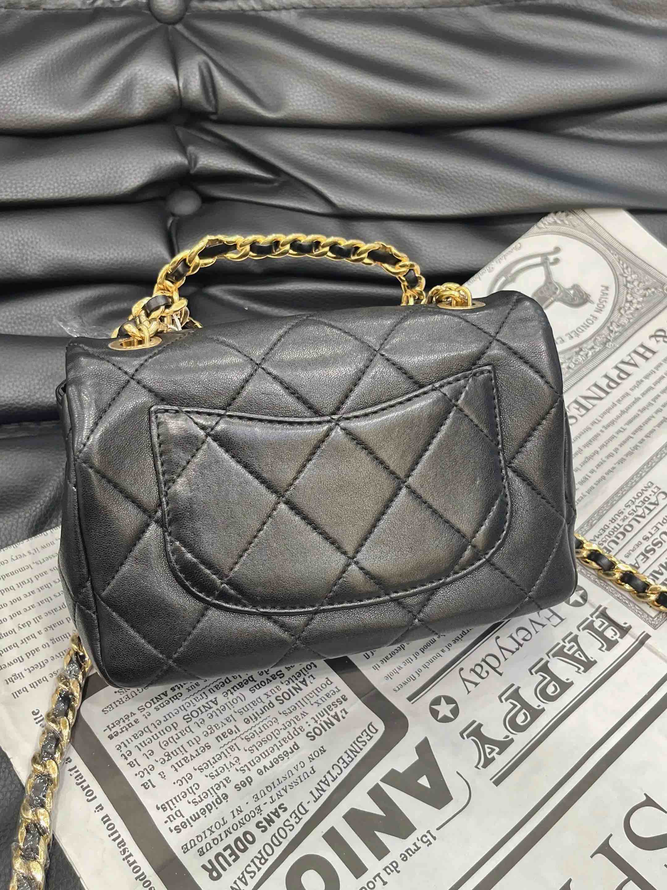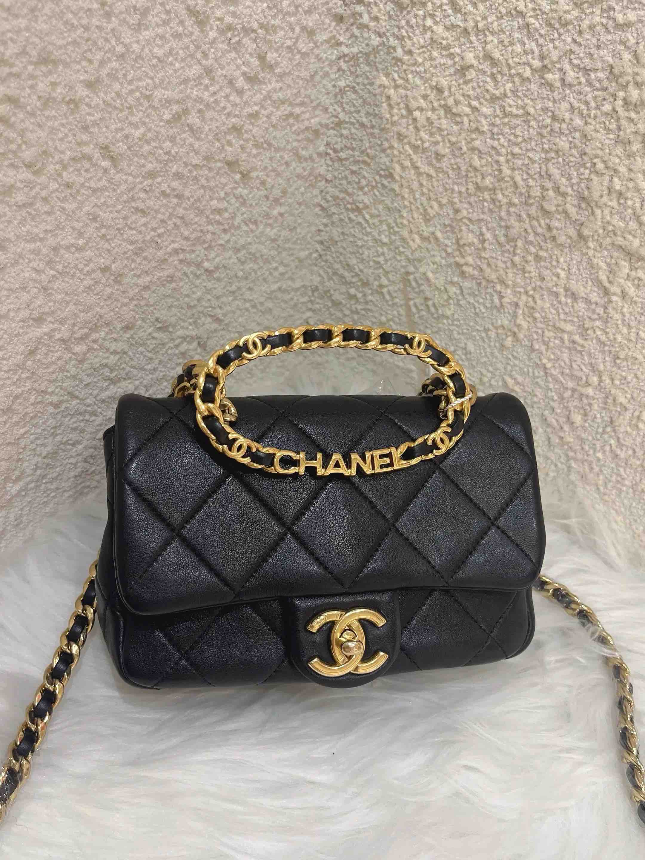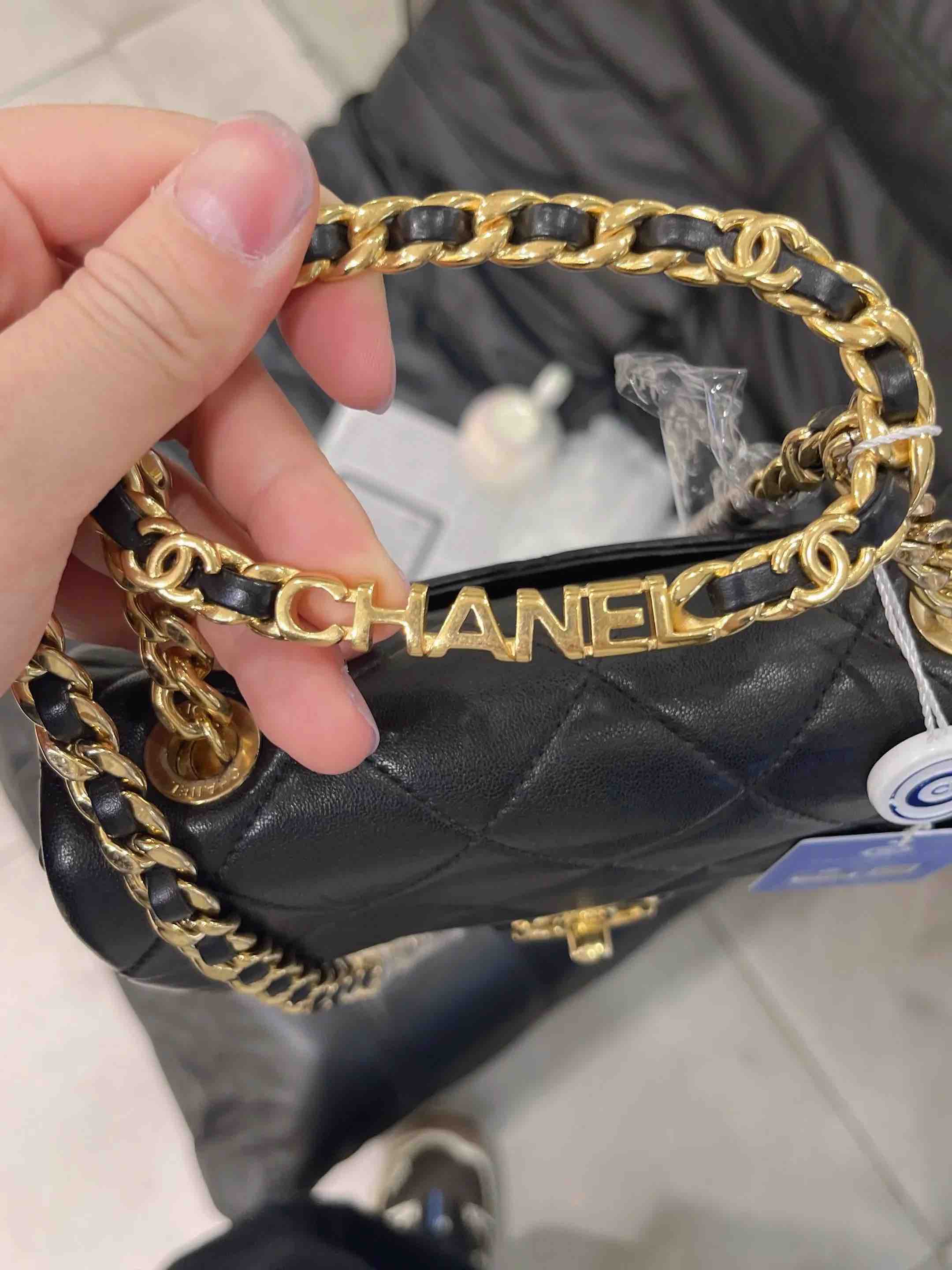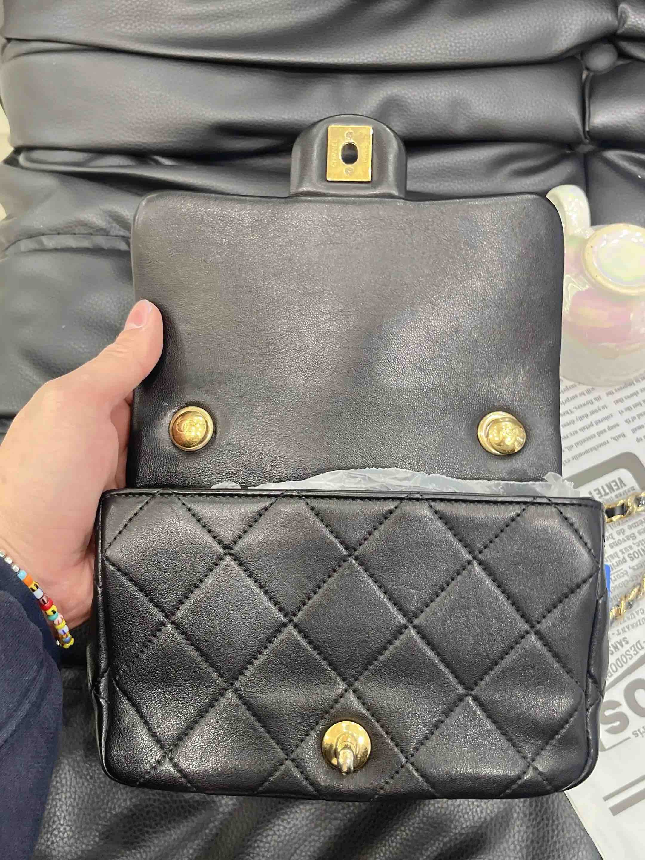 【商品详情】正品二手 Chanel 23C 圆环 方胖子 黑金 牛皮 斜挎包🤑97新 19*12 芯片款。圆环手柄精致可爱