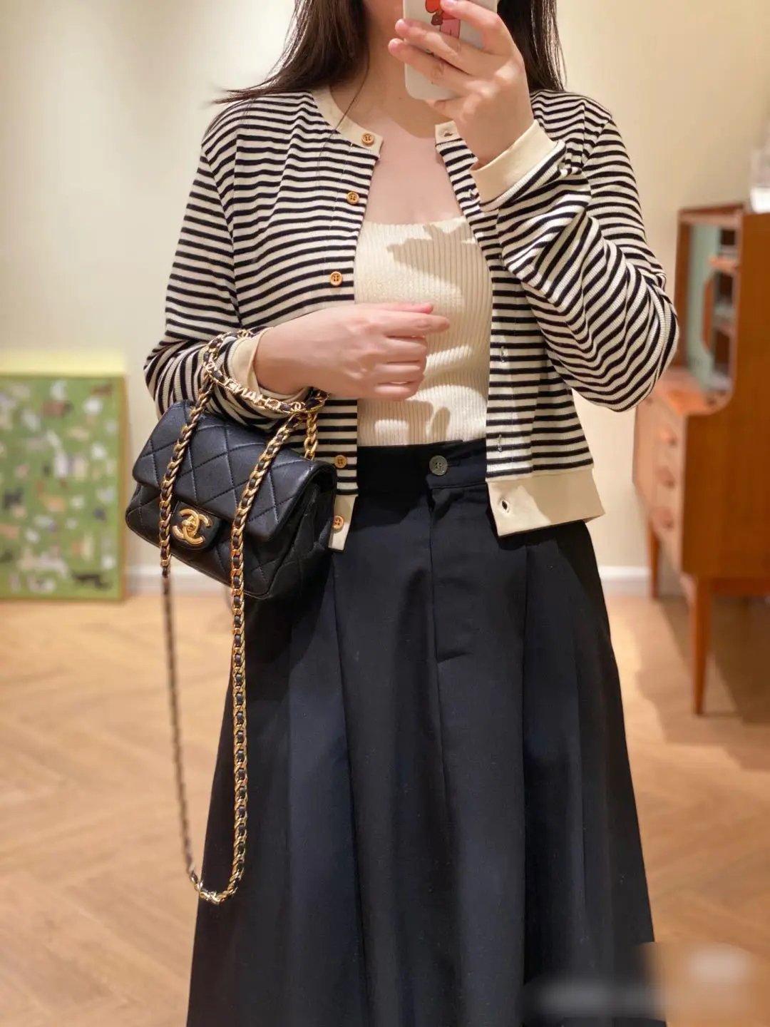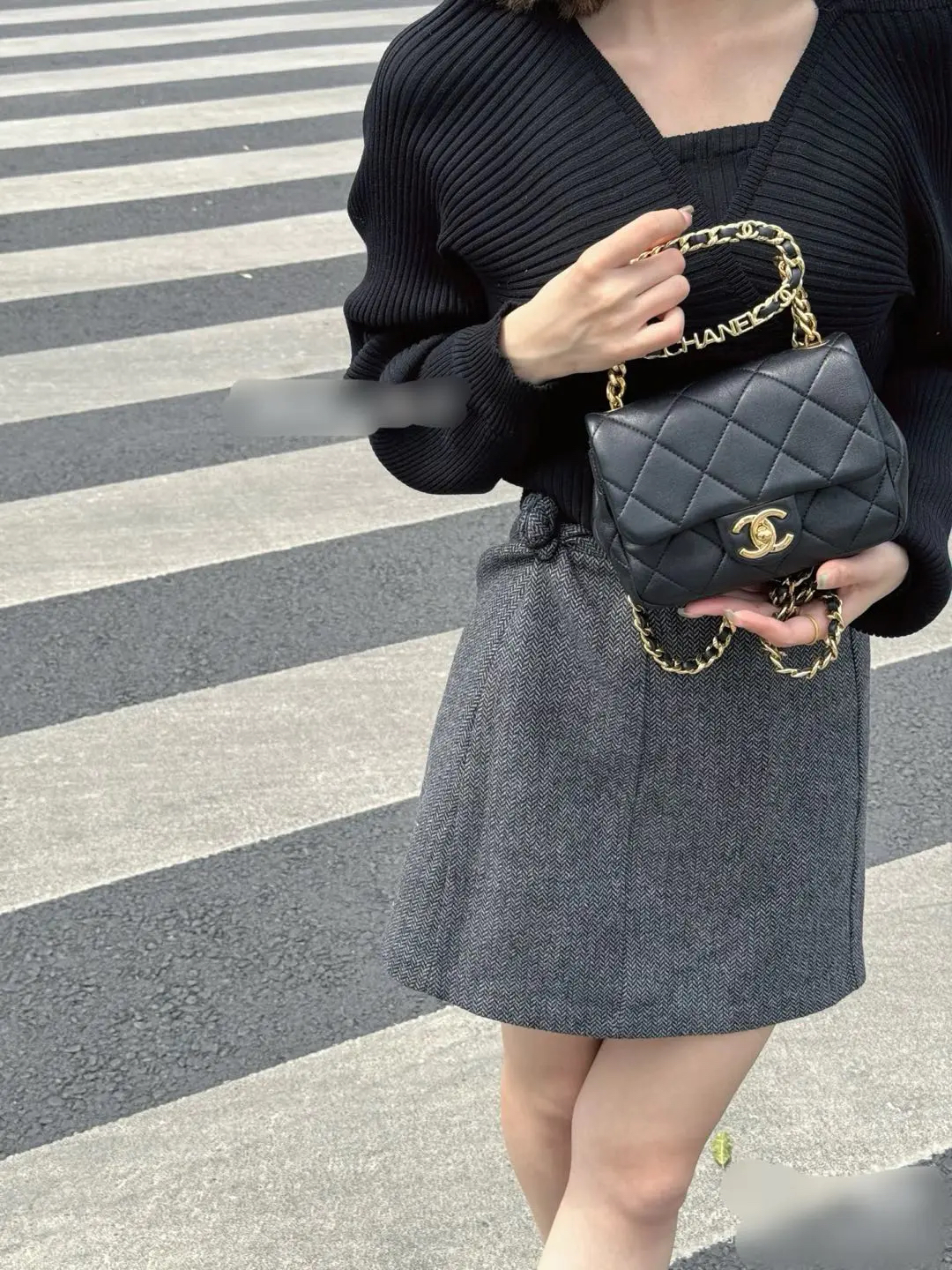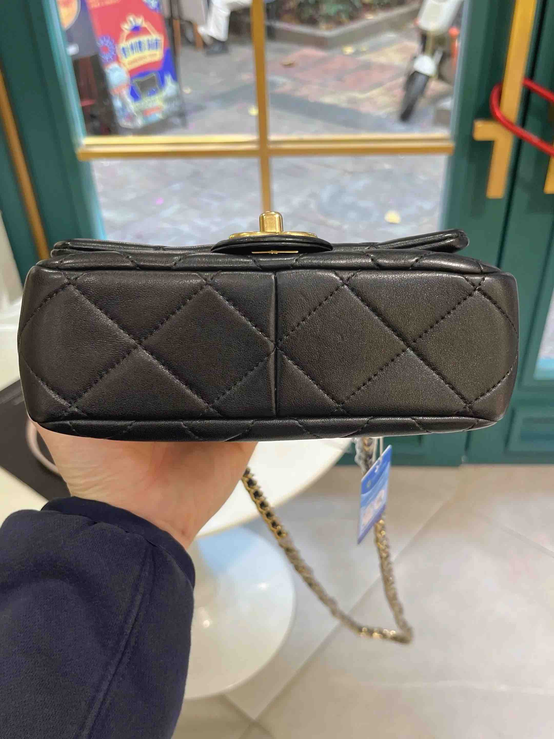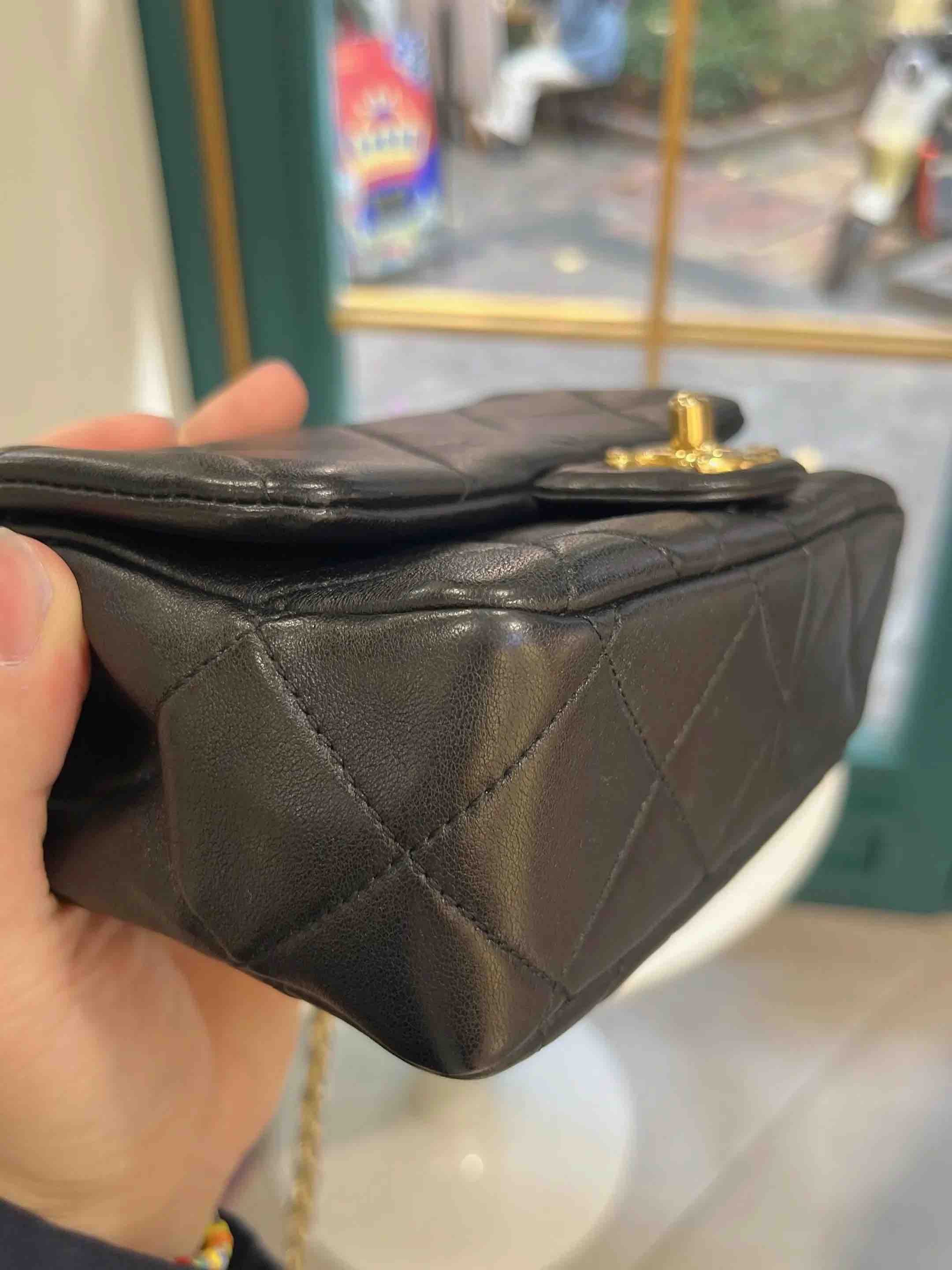 【商品详情】正品二手 Chanel 23C 圆环 方胖子 黑金 牛皮 斜挎包🤑97新 19*12 芯片款。圆环手柄精致可爱