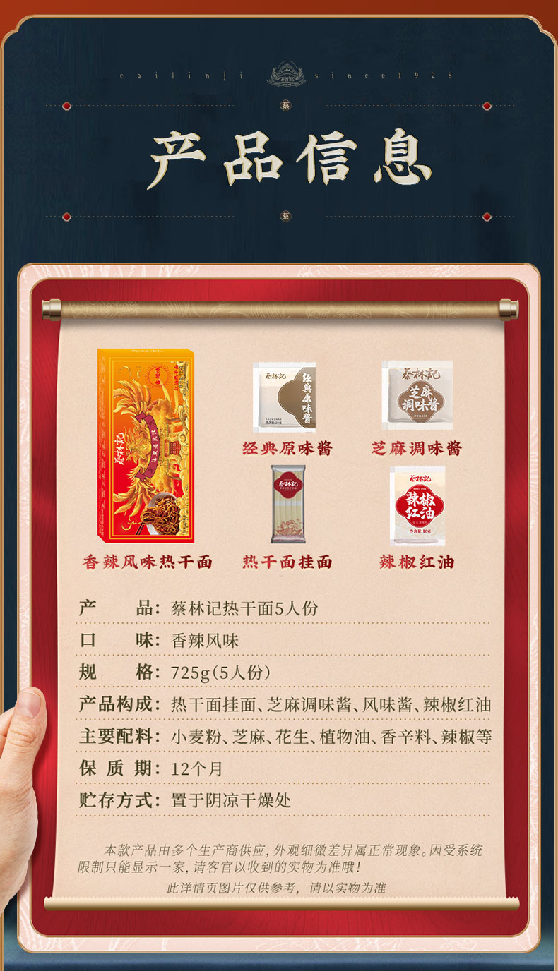 【特产劵199-100】蔡林记5人份盒装红油味热干面725g