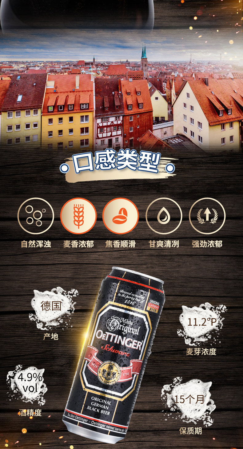 奥丁格德国进口黑啤酒500mL*24听罐装焦香浓郁原装整箱装