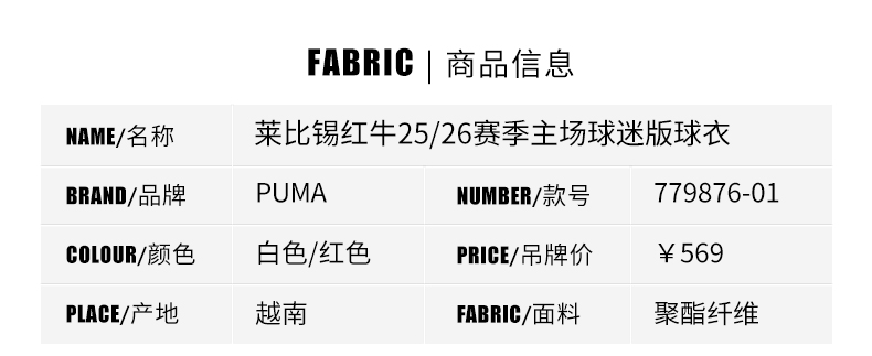 SFS彪马Puma25/26莱比锡红牛主场球迷版球衣 779876-01