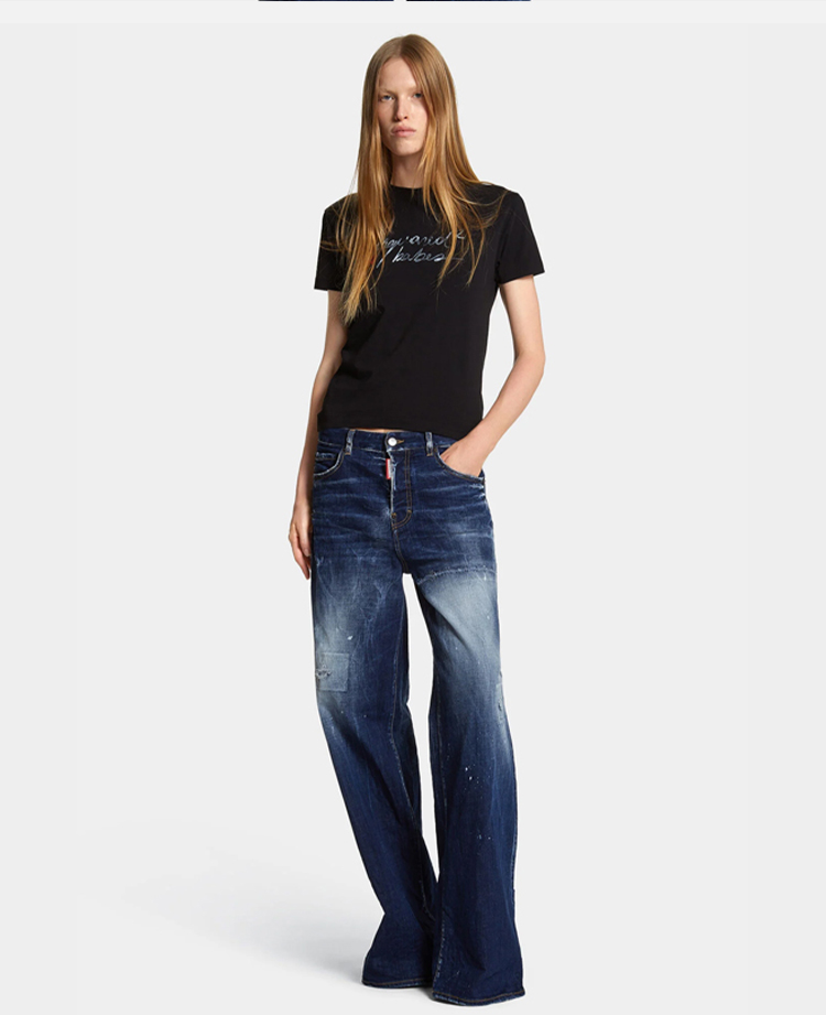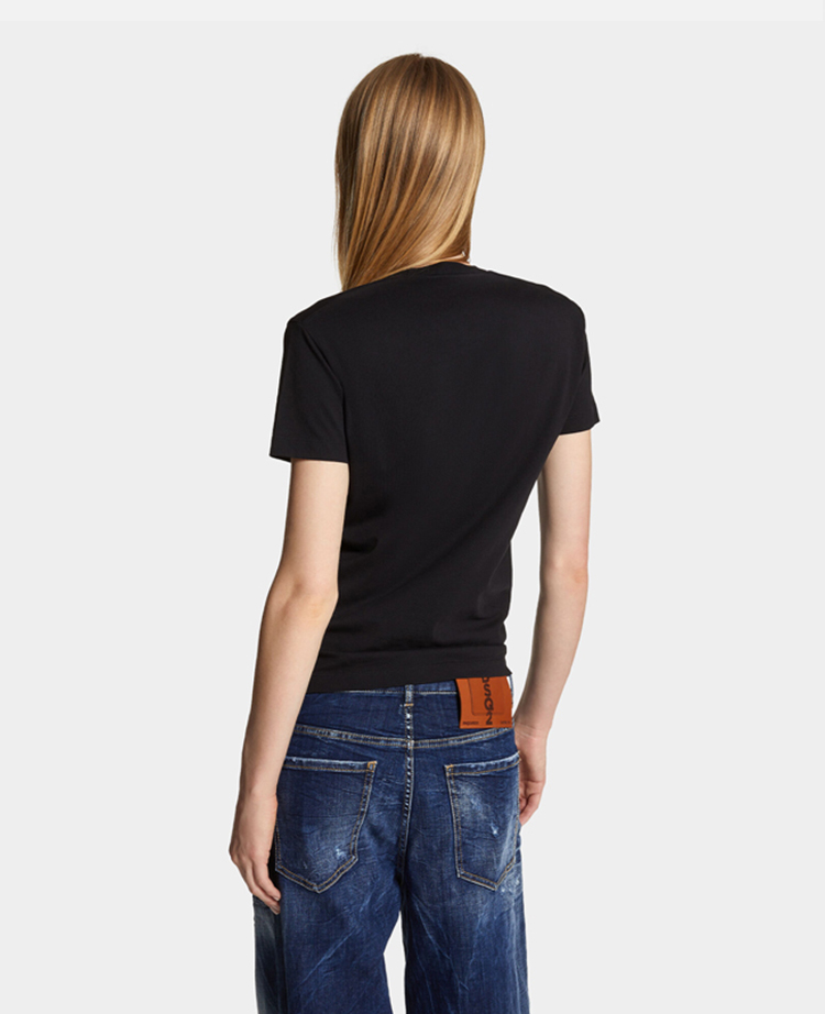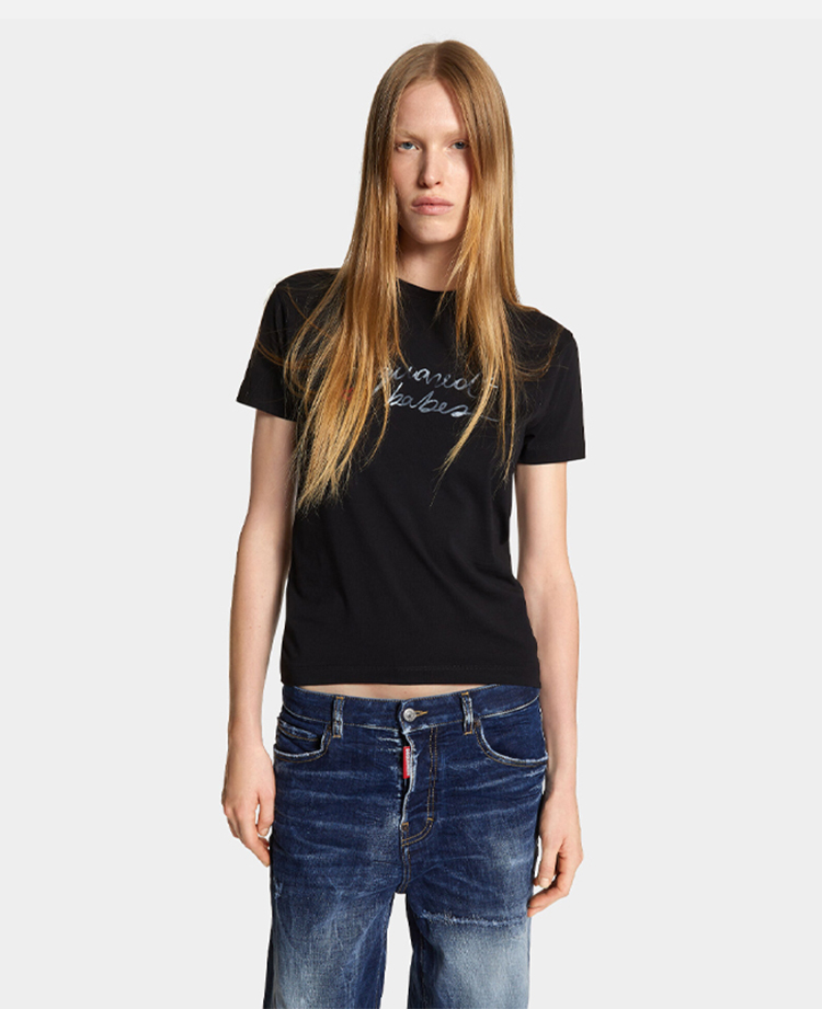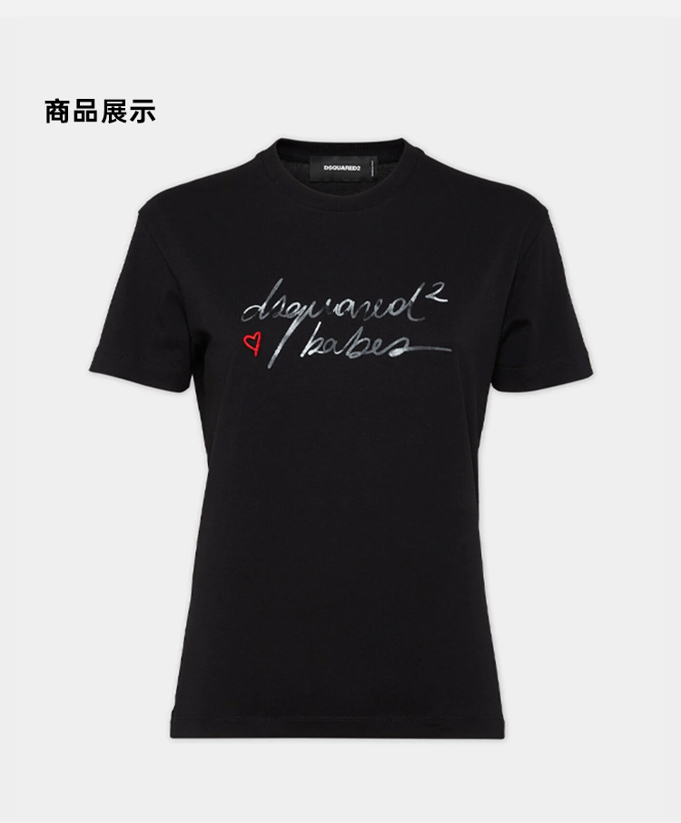 DSQUARED2 女士涂鸦徽标印花棉质圆领短袖T恤 黑色 S72GD0571 D20020 900