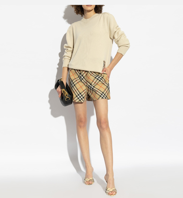 BURBERRY 巴宝莉 女士马术骑士徽标贴花休闲短裤 格子 8106890 B9368