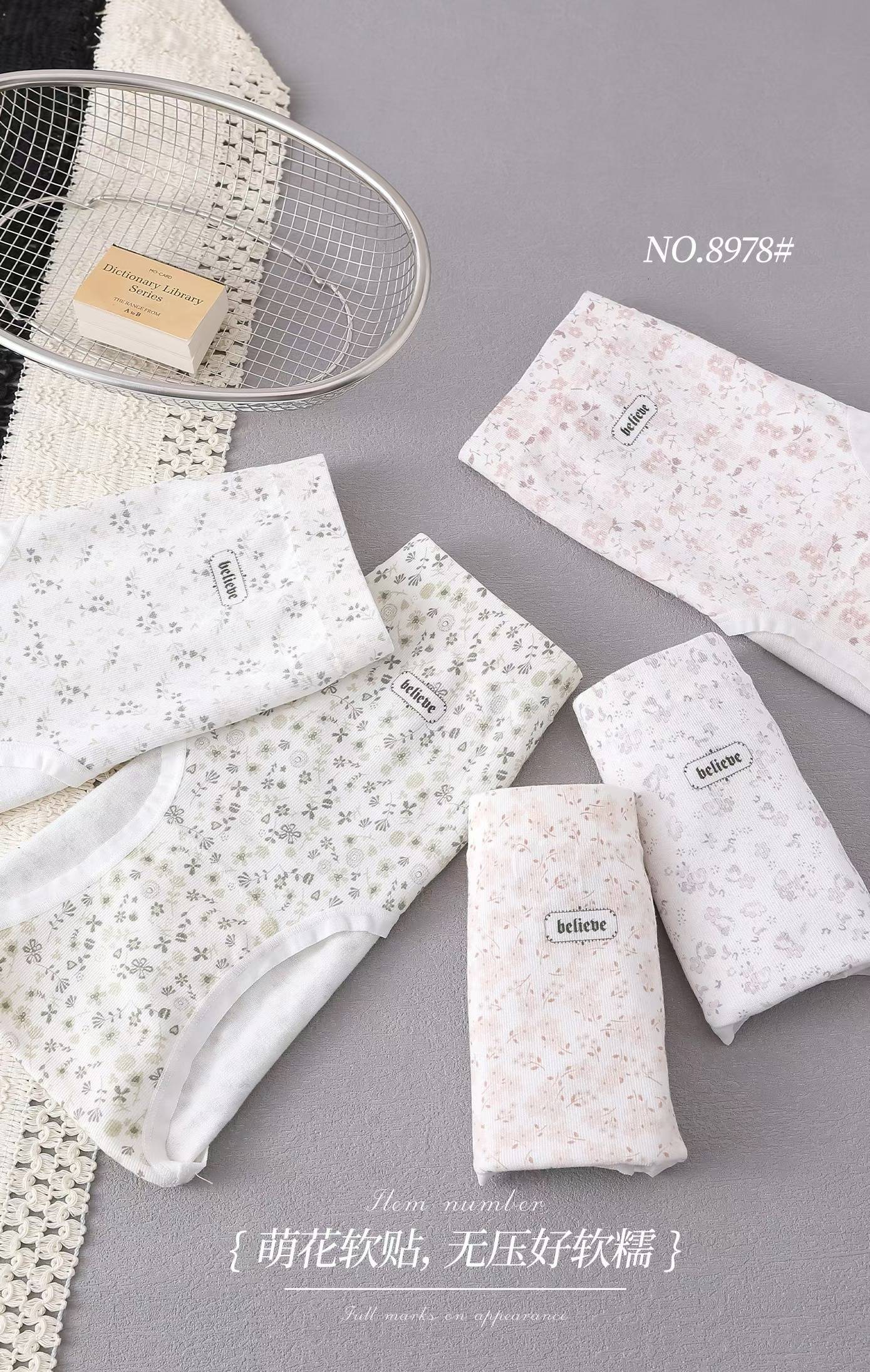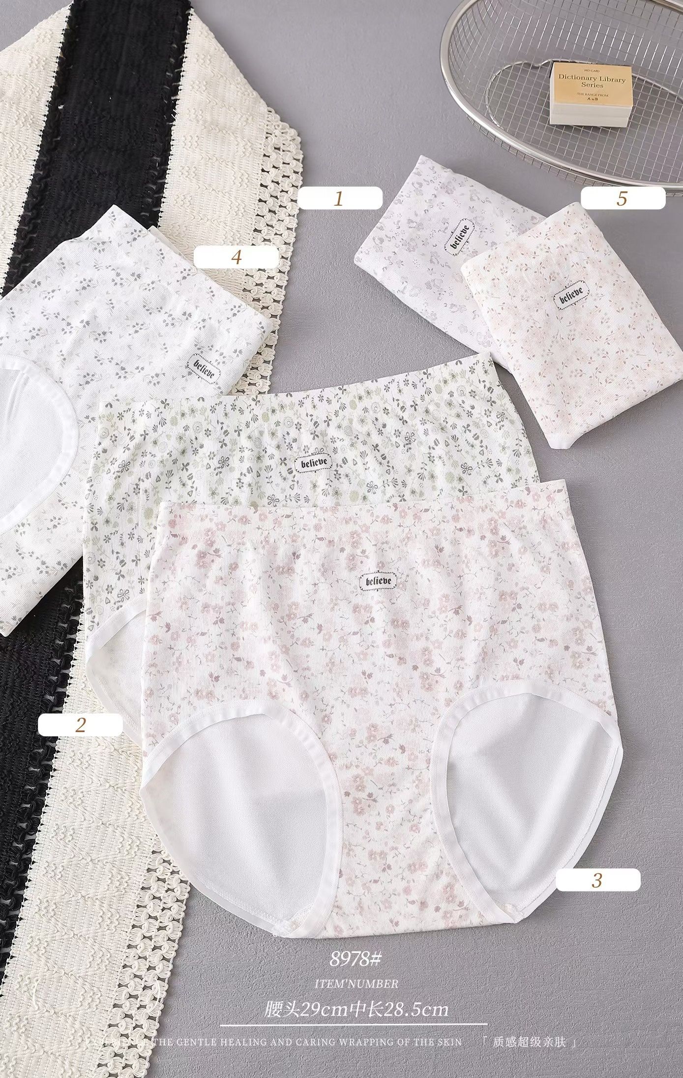 新款女士印花碎花无缝内裤裸氨棉舒适透气三角裤高腰中大版8978