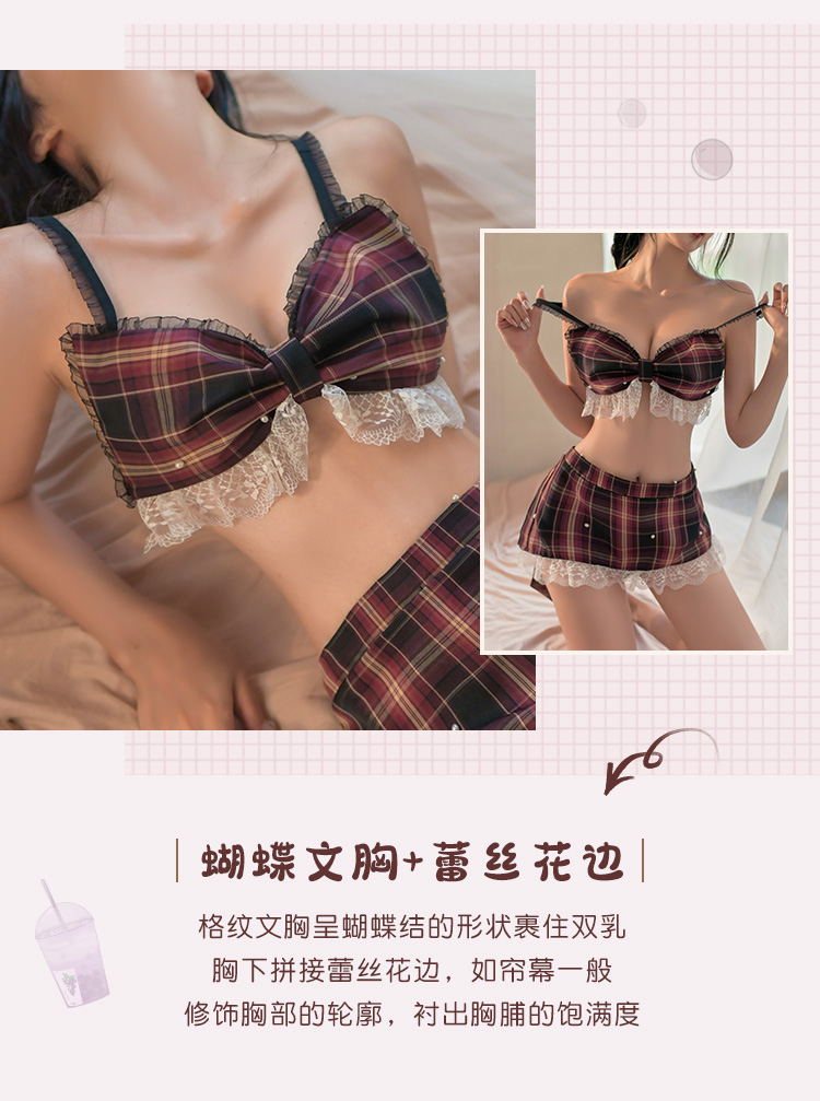 【英伦蝶舞】情趣内衣 蝴蝶文胸 绑带裙套装 性感 制服 可爱 包邮 型号:6924