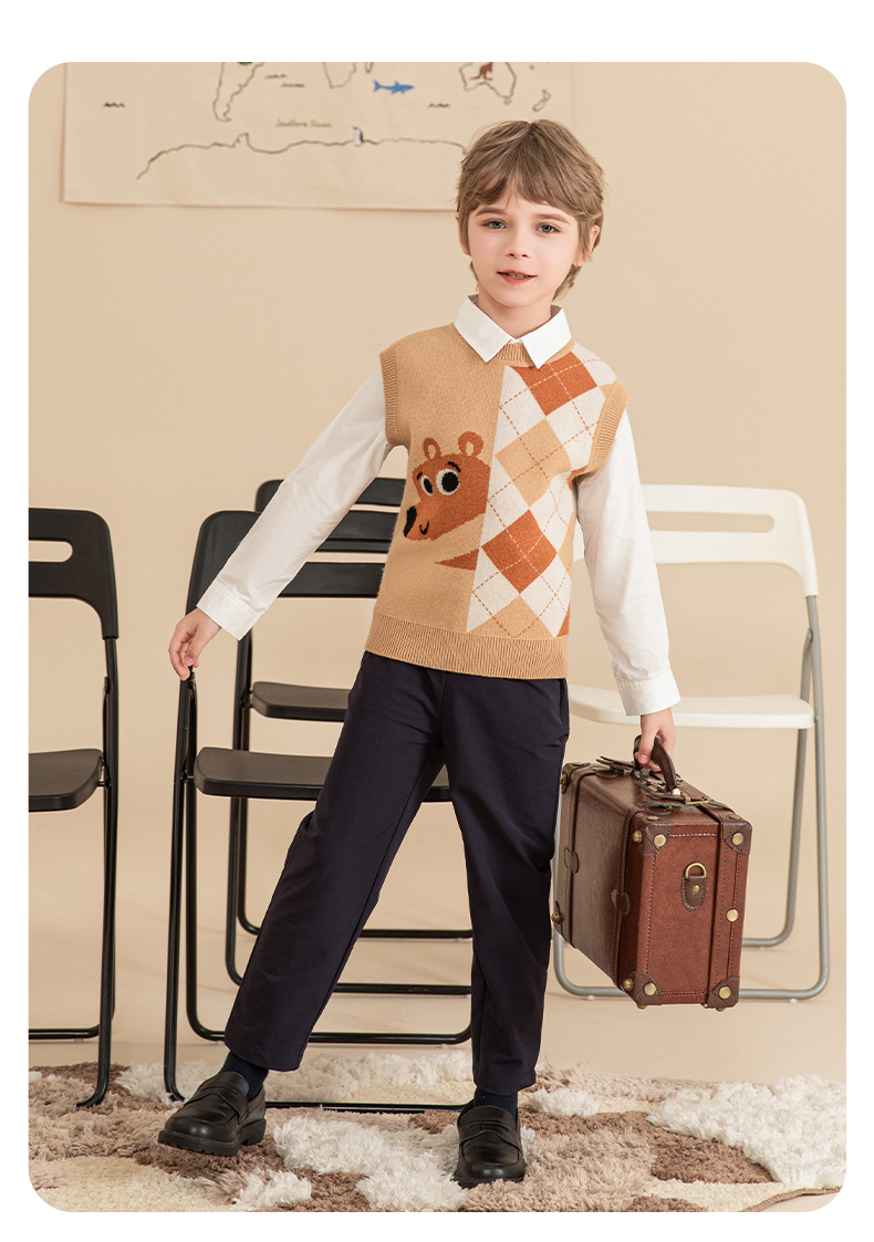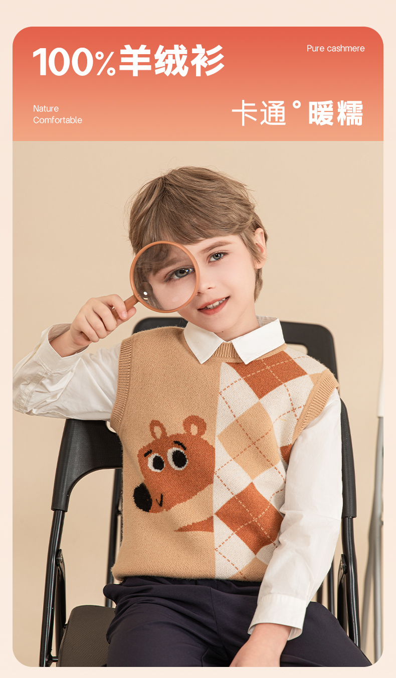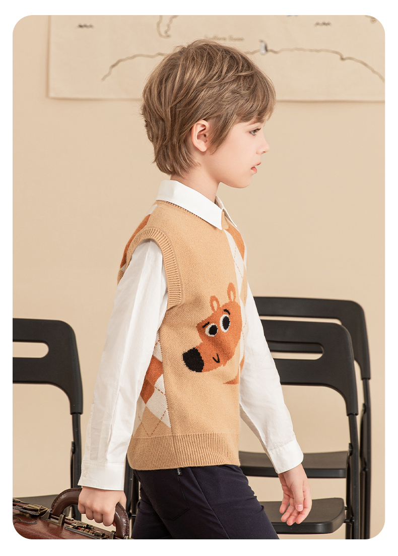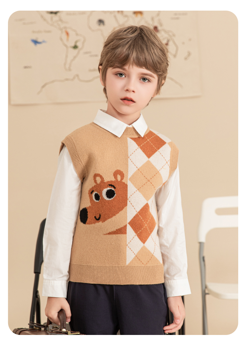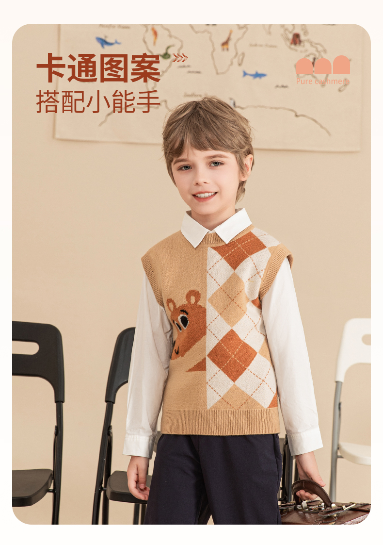 mettekids儿童羊绒背心秋季新款男童针织马甲中大童加厚卡通毛衣