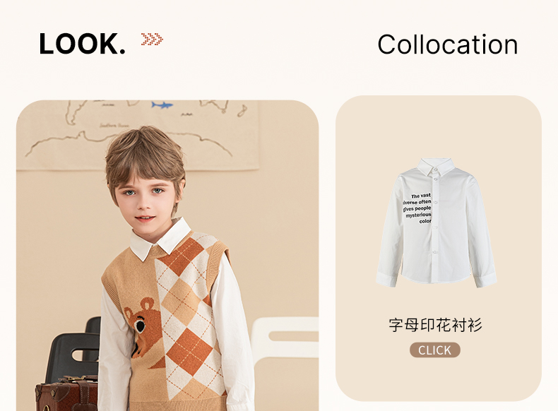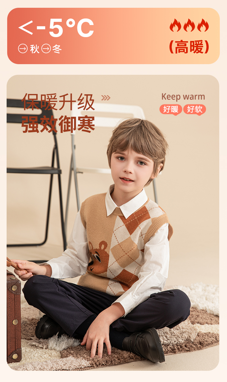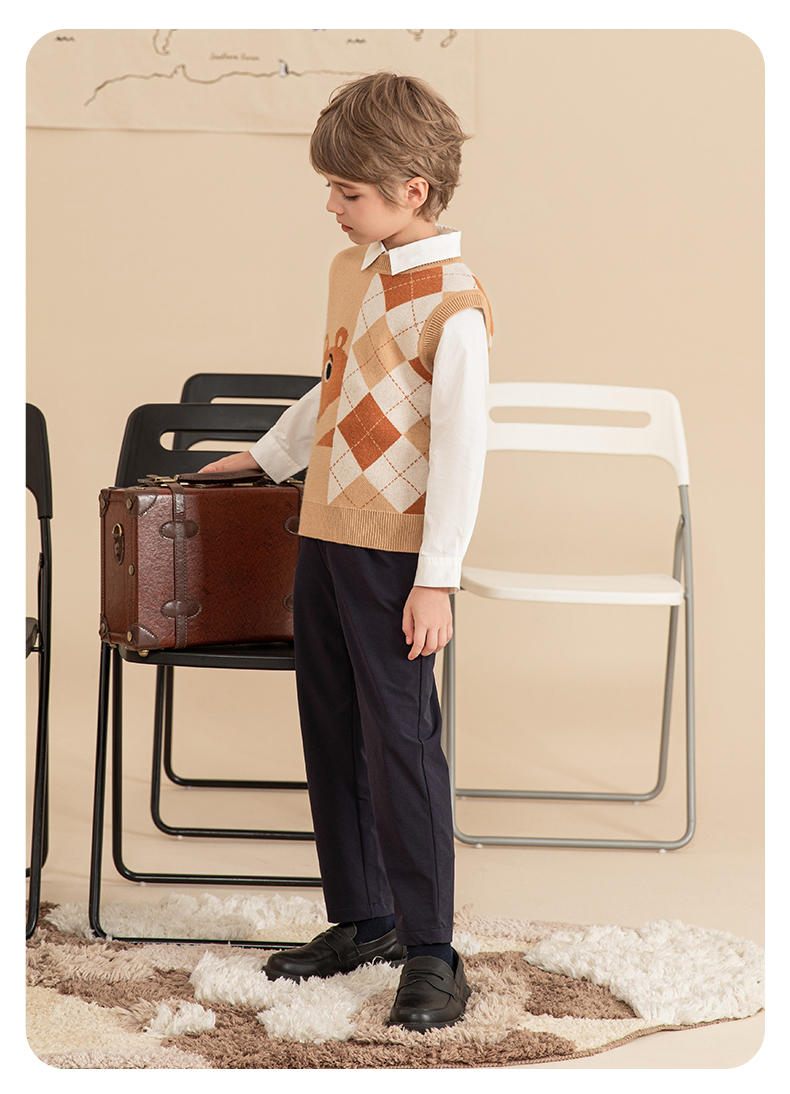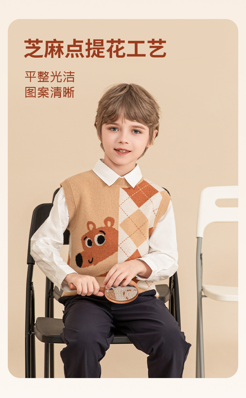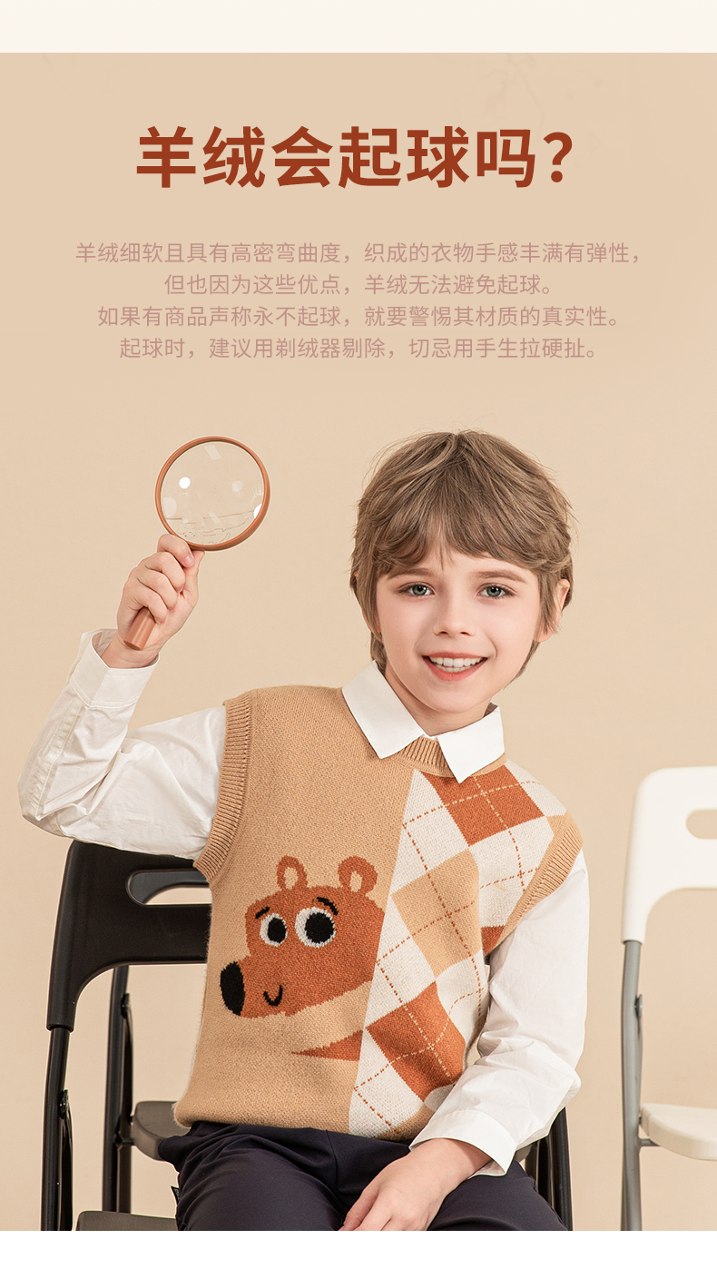 mettekids儿童羊绒背心秋季新款男童针织马甲中大童加厚卡通毛衣