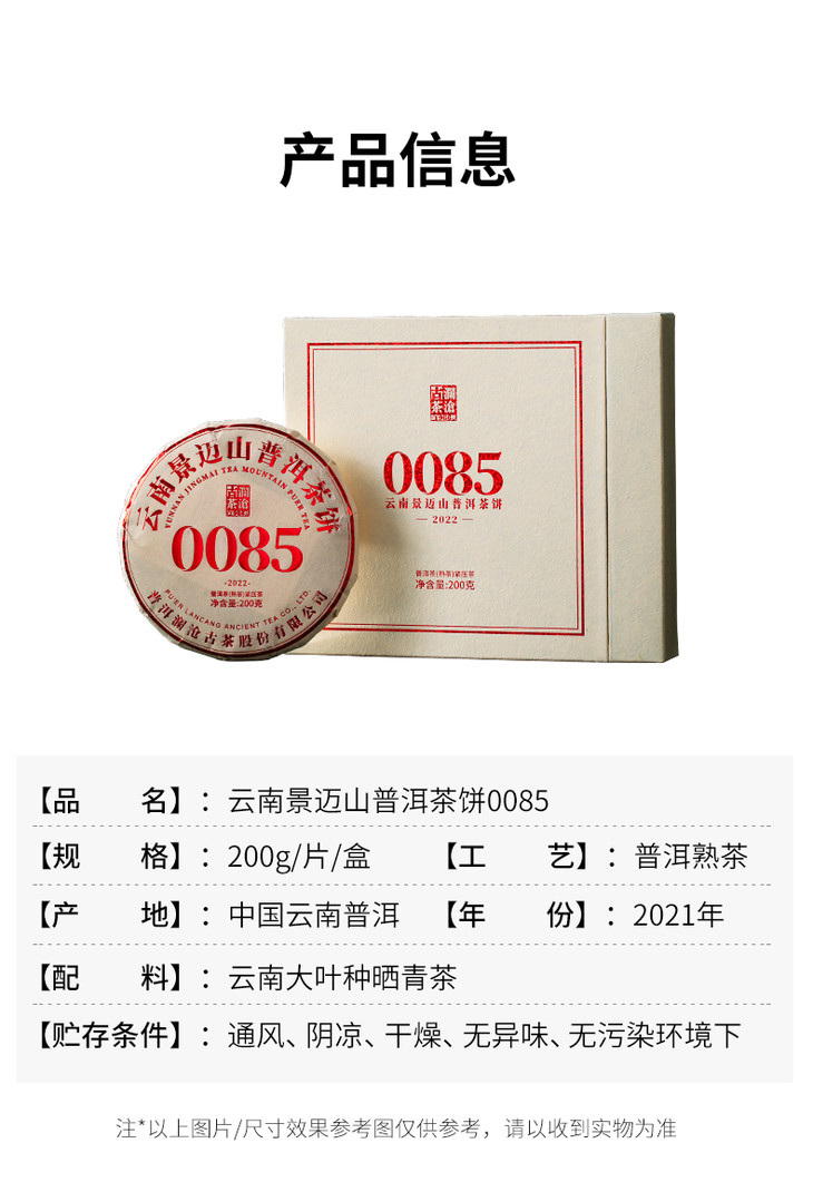 【618大促】澜沧古2022年0085小饼200g+时间的味道8年醇128g+时间的味道10年醇128g-进阶熟茶1588元套组