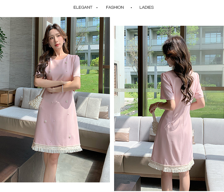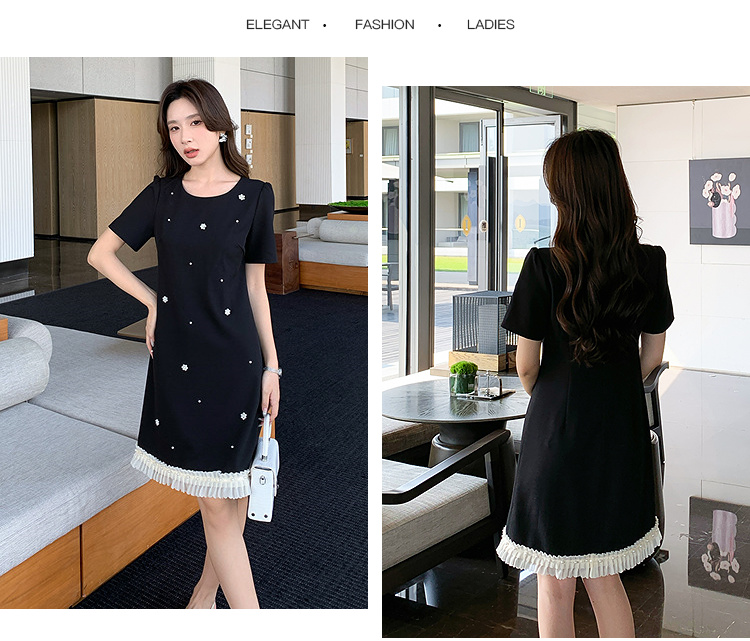 【清仓超15天不保价】奢姿大码女装2025夏季钉珠减龄花边拼接时尚连衣裙胖妹妹简约裙子9952890413【1】