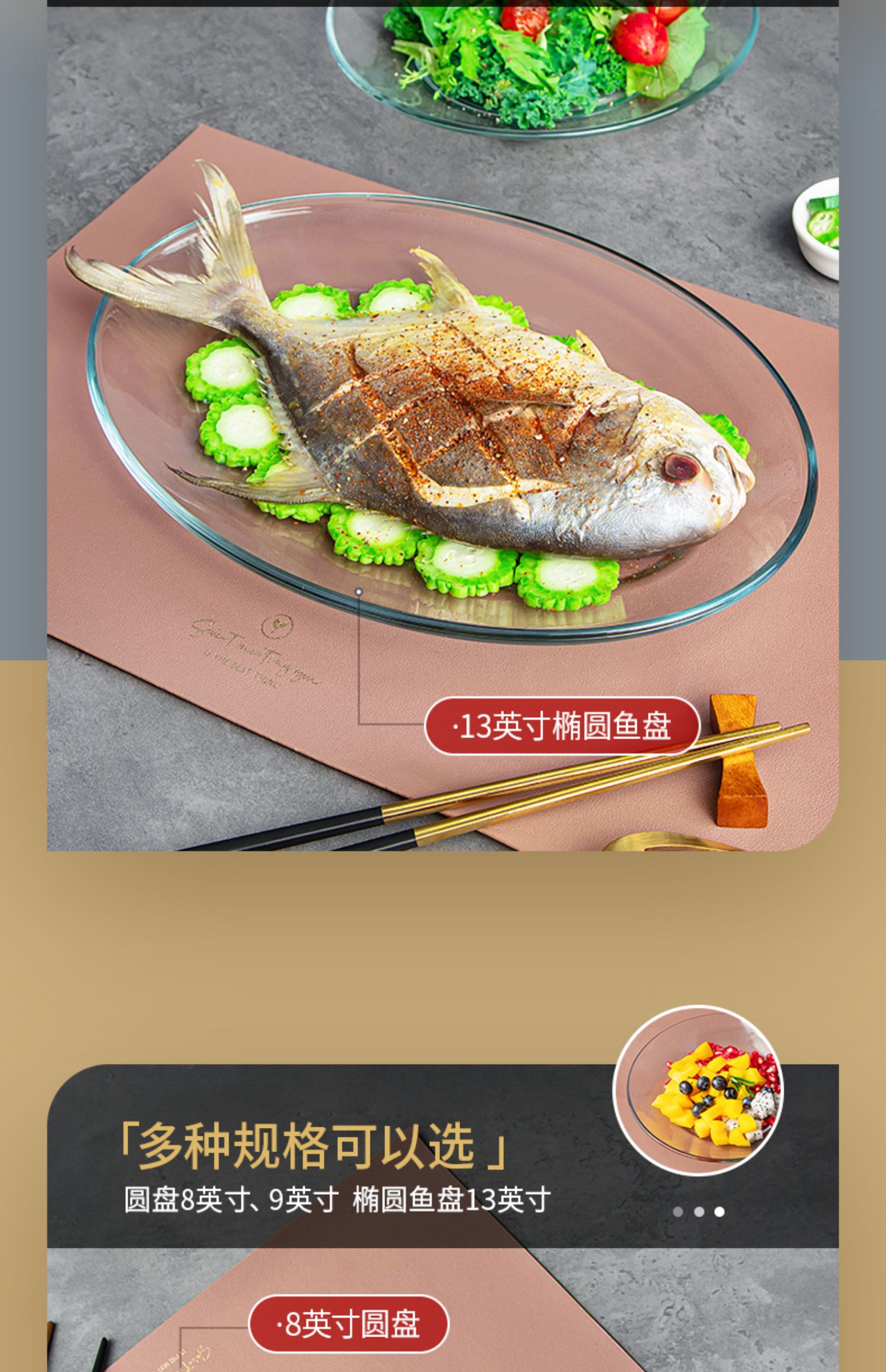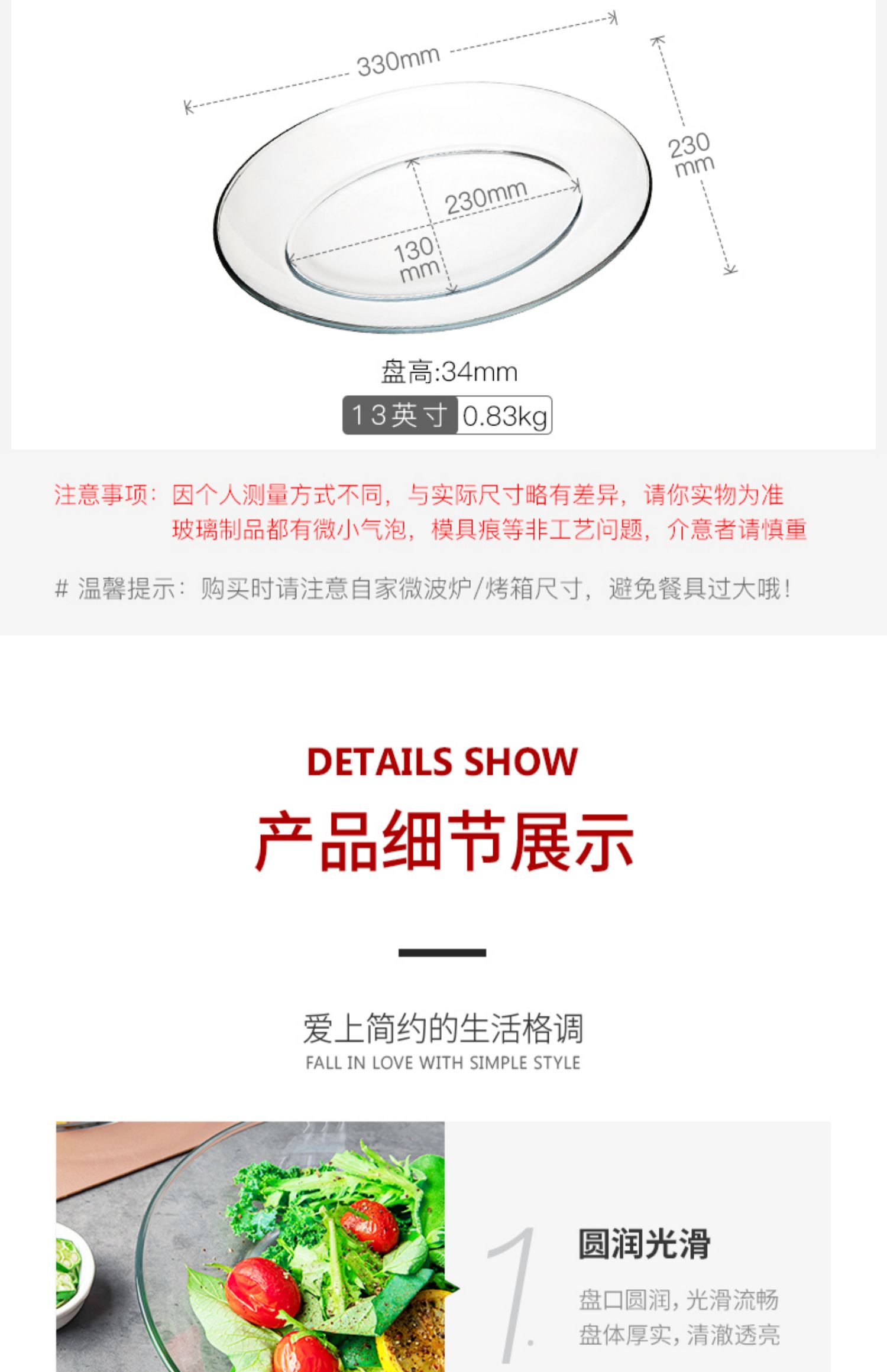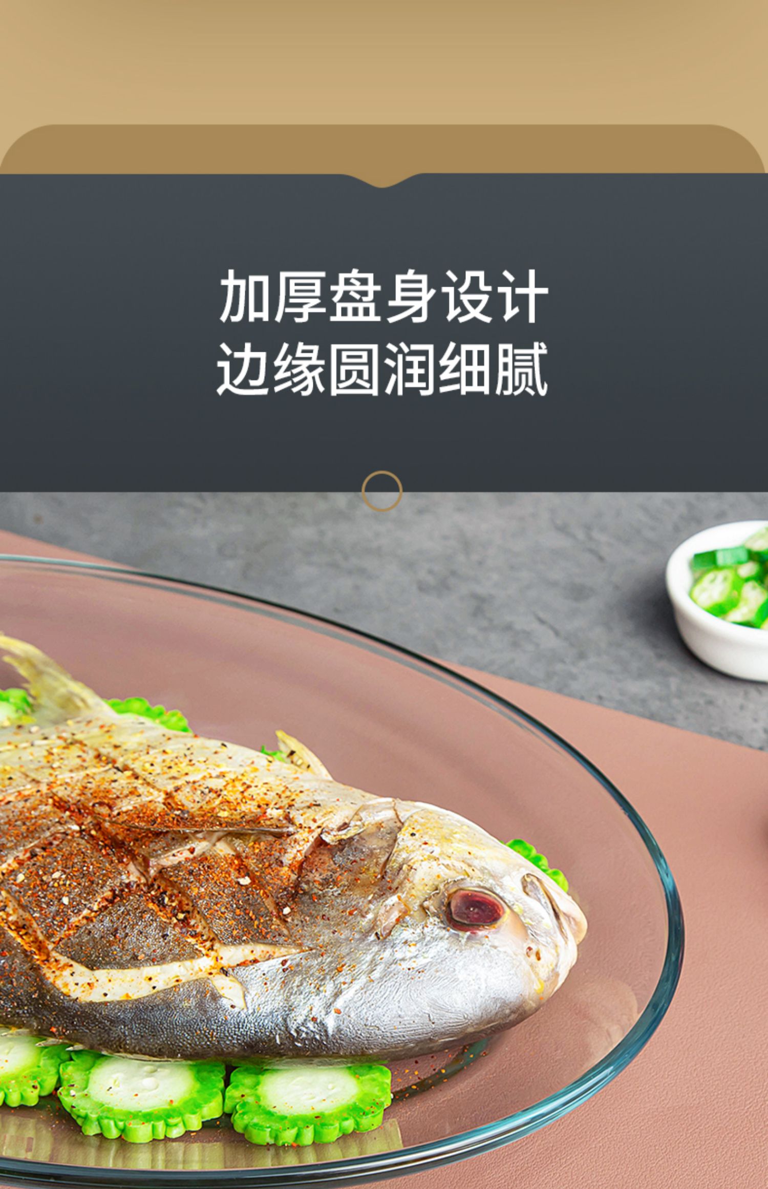 菲内克斯钢化玻璃透明耐热椭圆盘子大号13英寸鱼盘装菜盘意面盘子