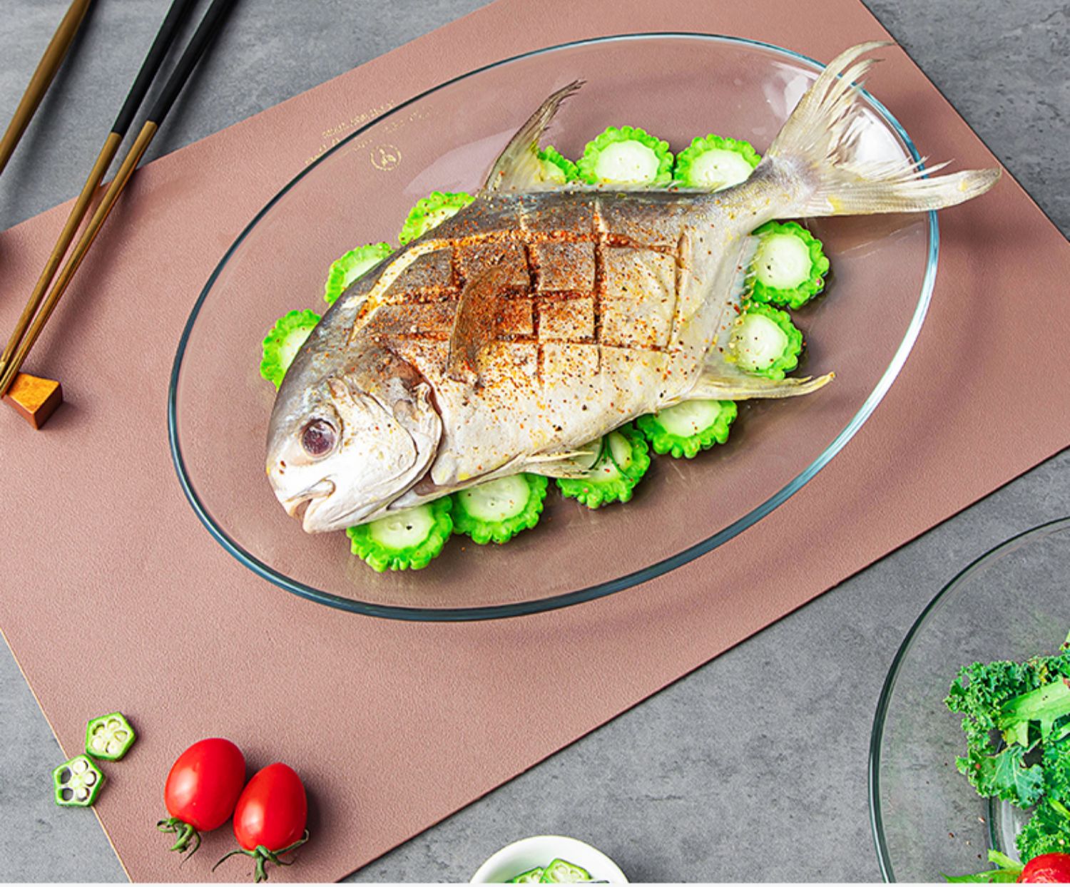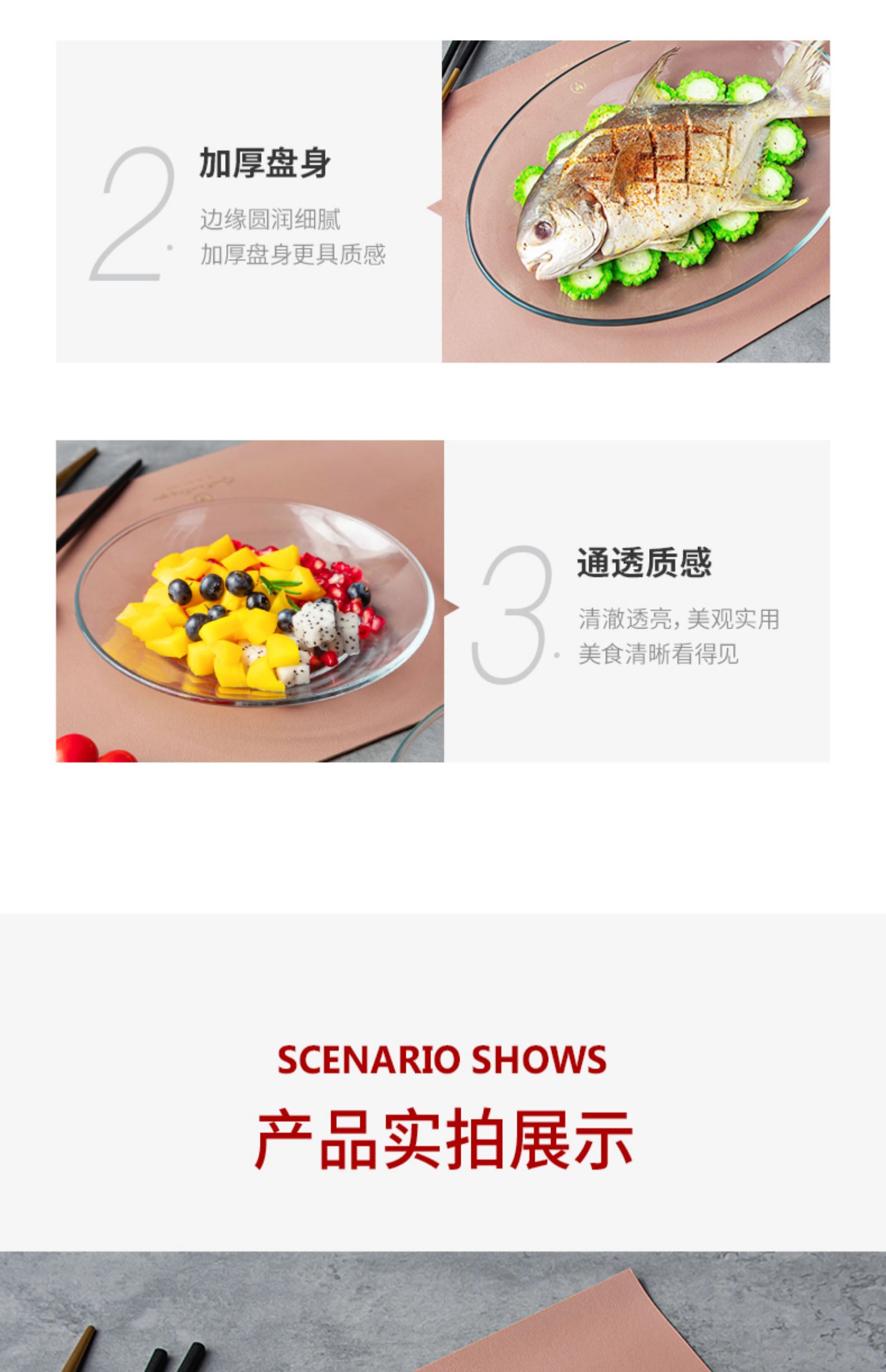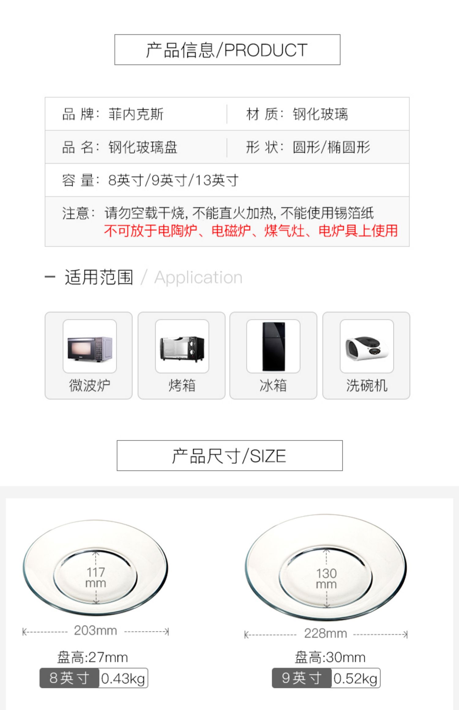 菲内克斯钢化玻璃透明耐热椭圆盘子大号13英寸鱼盘装菜盘意面盘子