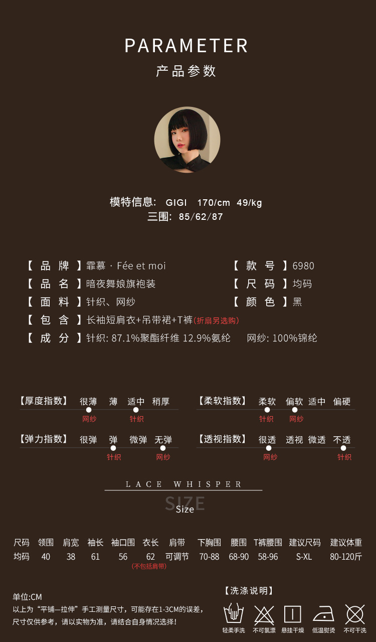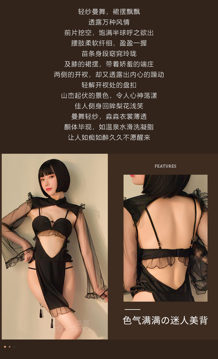 【暗夜华尔兹】情趣内衣 美女 制服 网纱 蕾丝 棉垫 性感 旗袍 外贸 6980