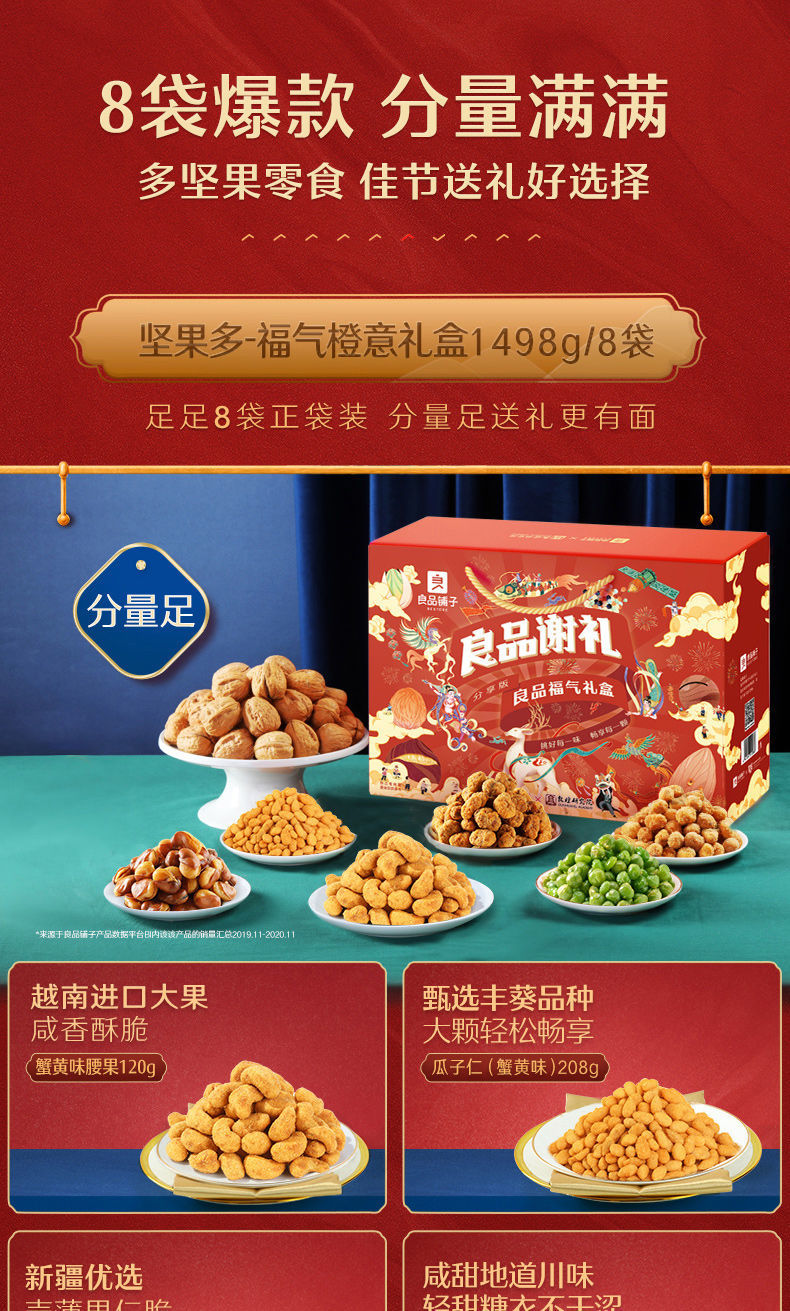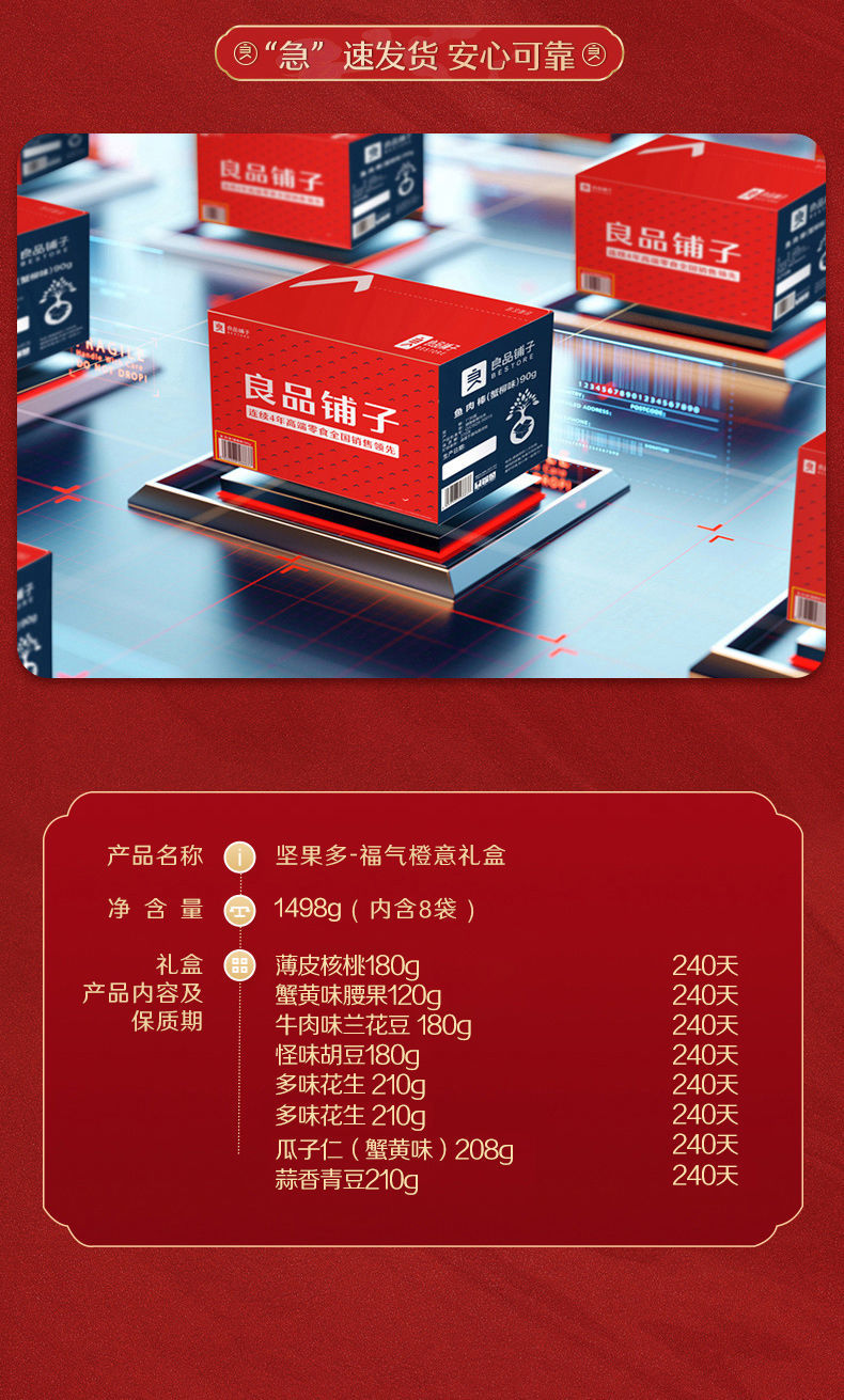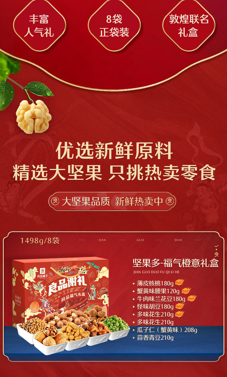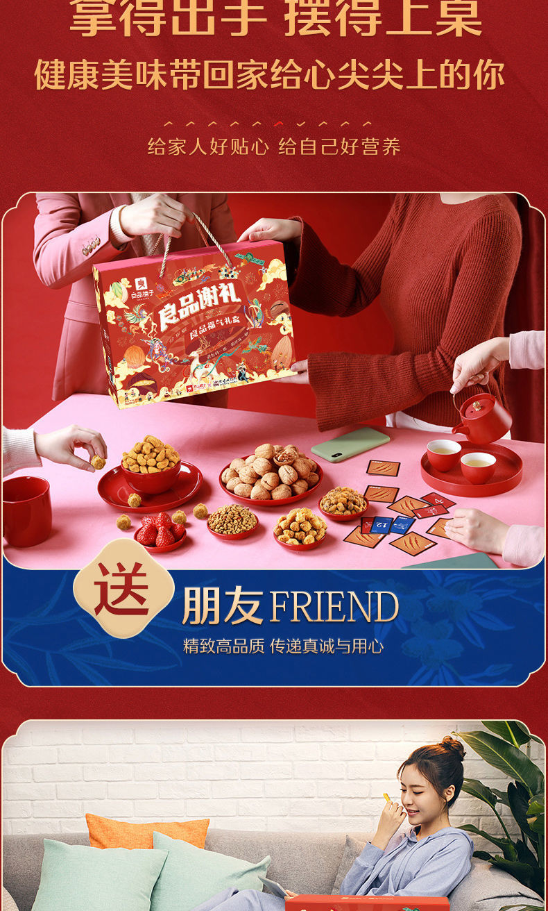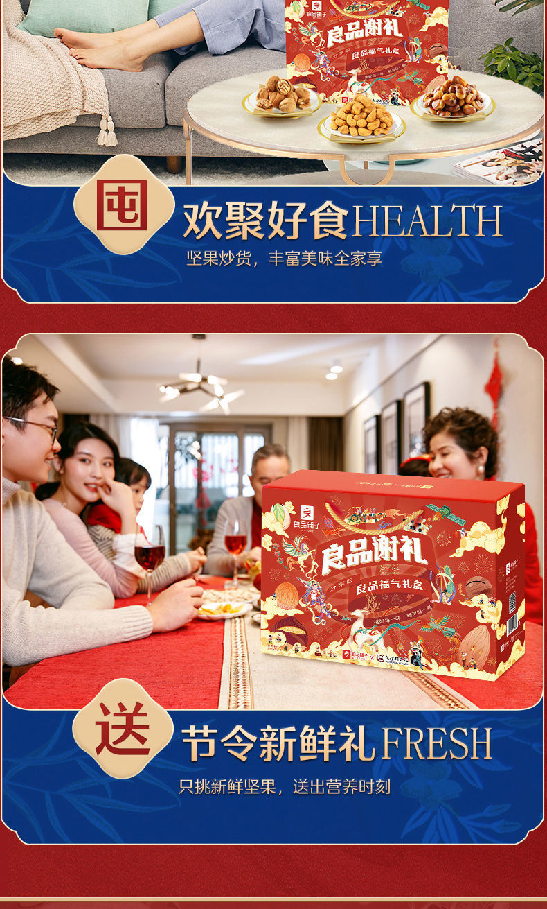 良品铺子福气礼盒1498g 零食大礼包坚果礼盒干果核桃巴旦木香瓜子小吃