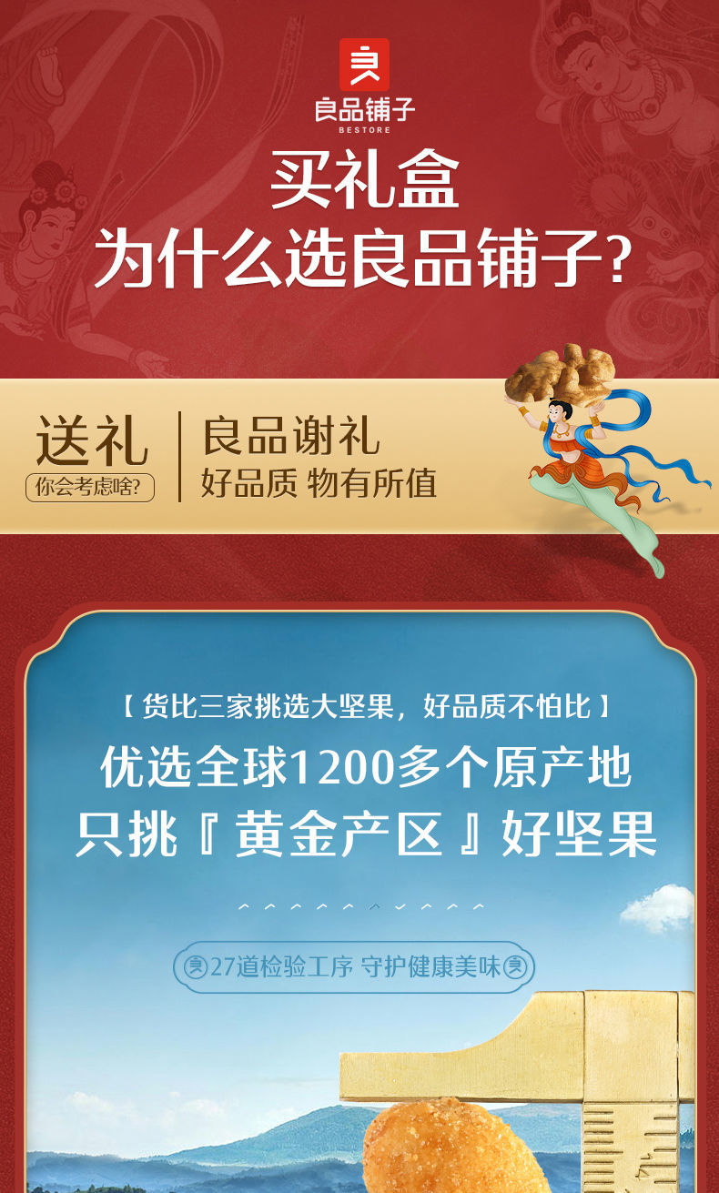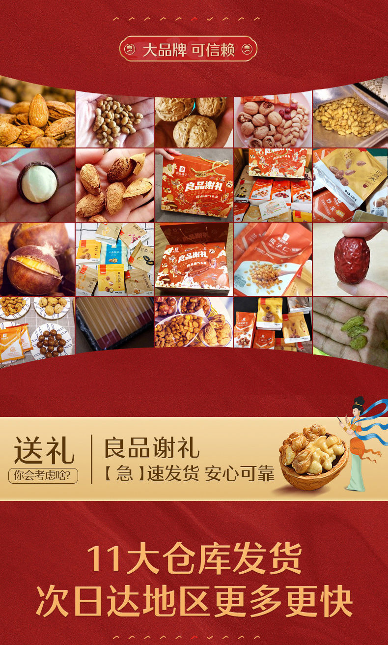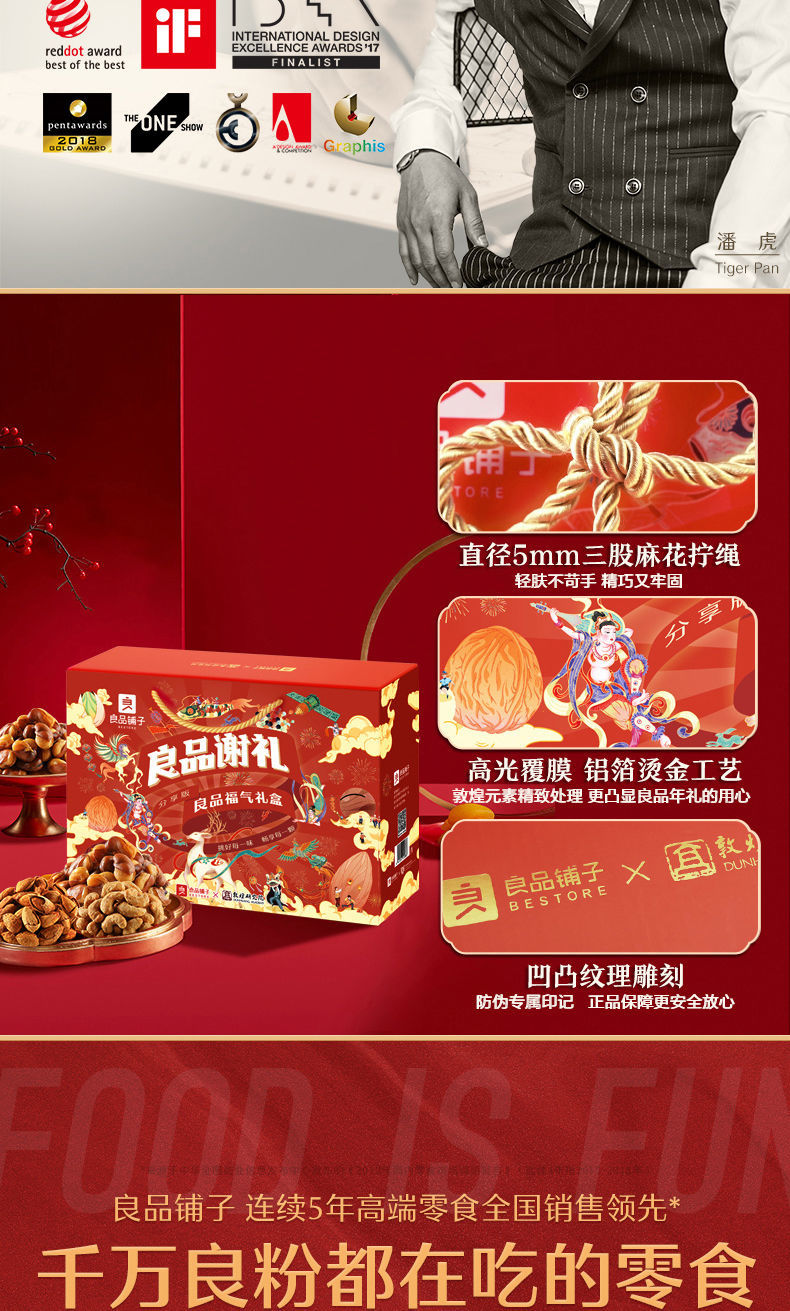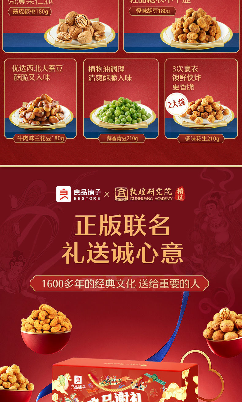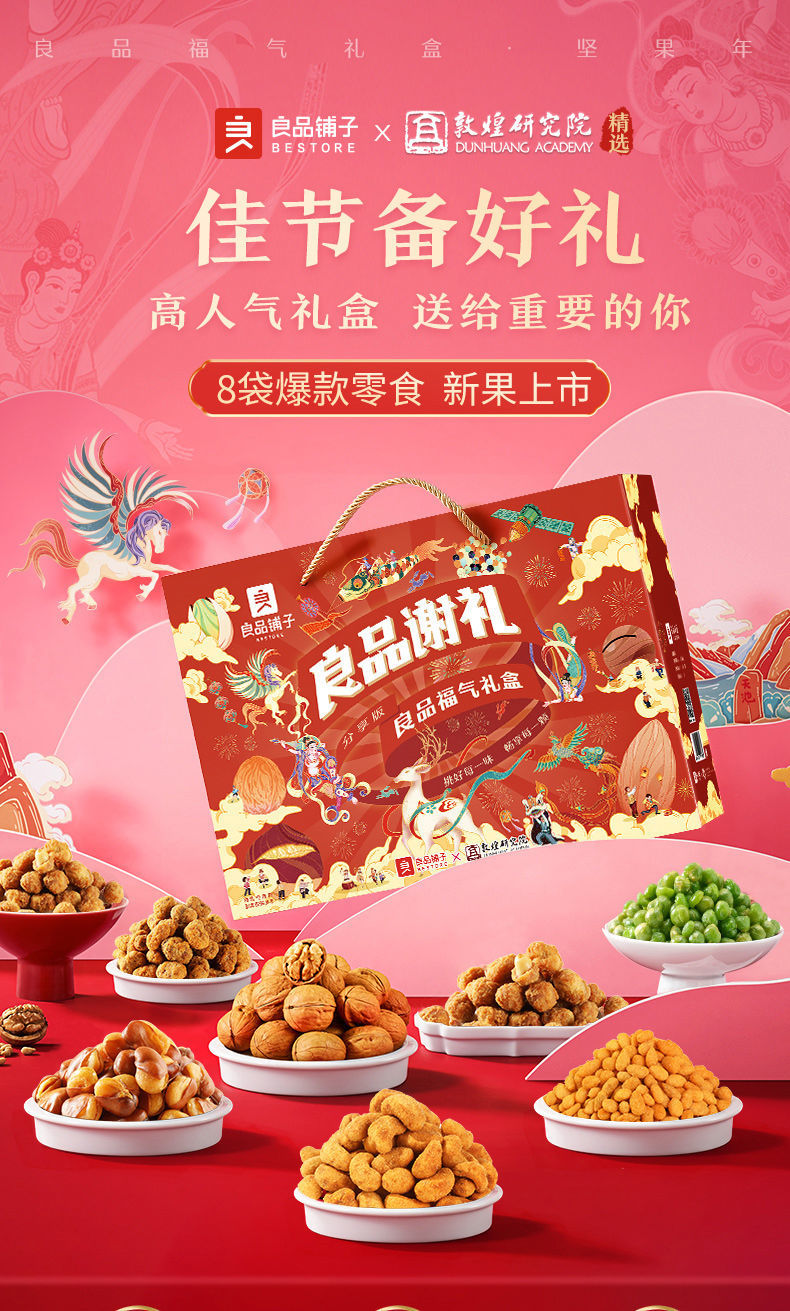 良品铺子福气礼盒1498g 零食大礼包坚果礼盒干果核桃巴旦木香瓜子小吃