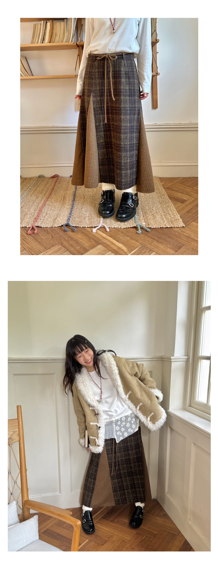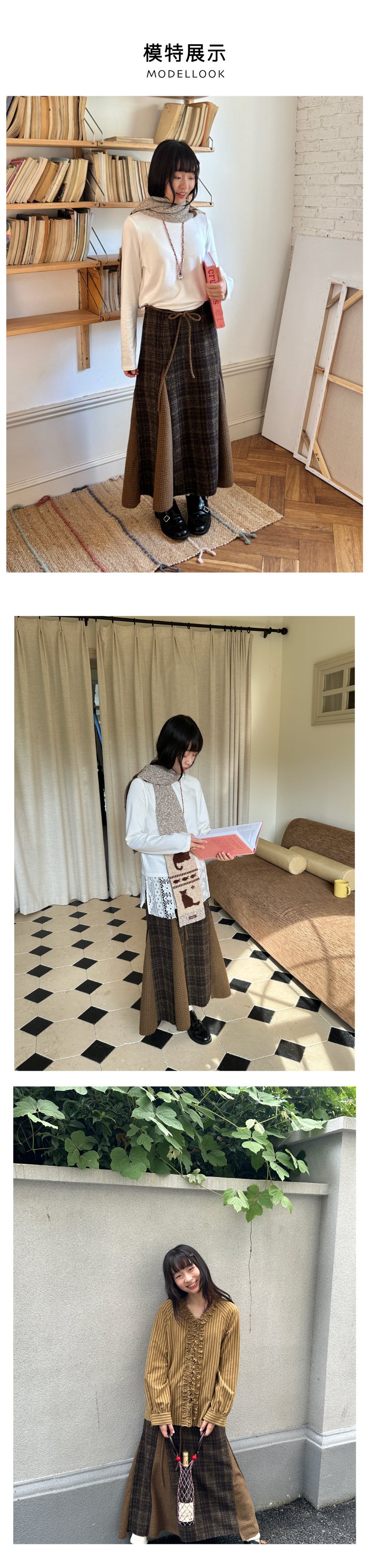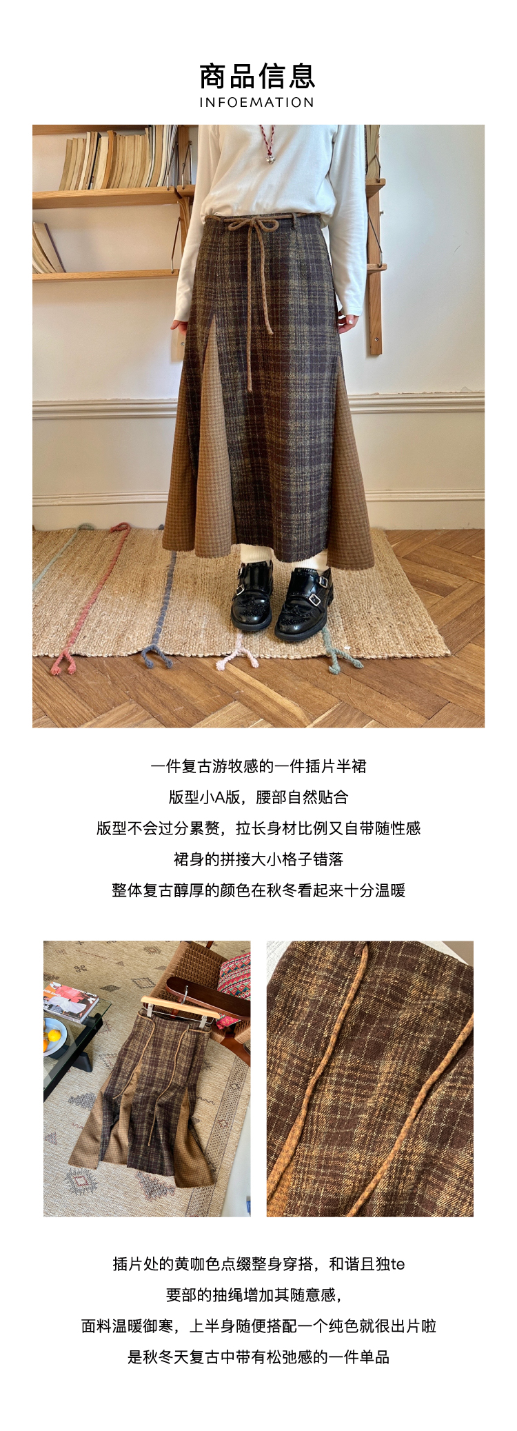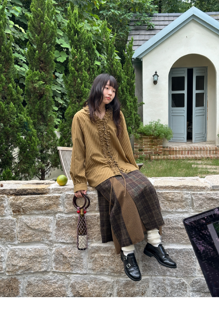 nothe Case布然/NC253201/「冬日午后」黄咖色格纹插片裙