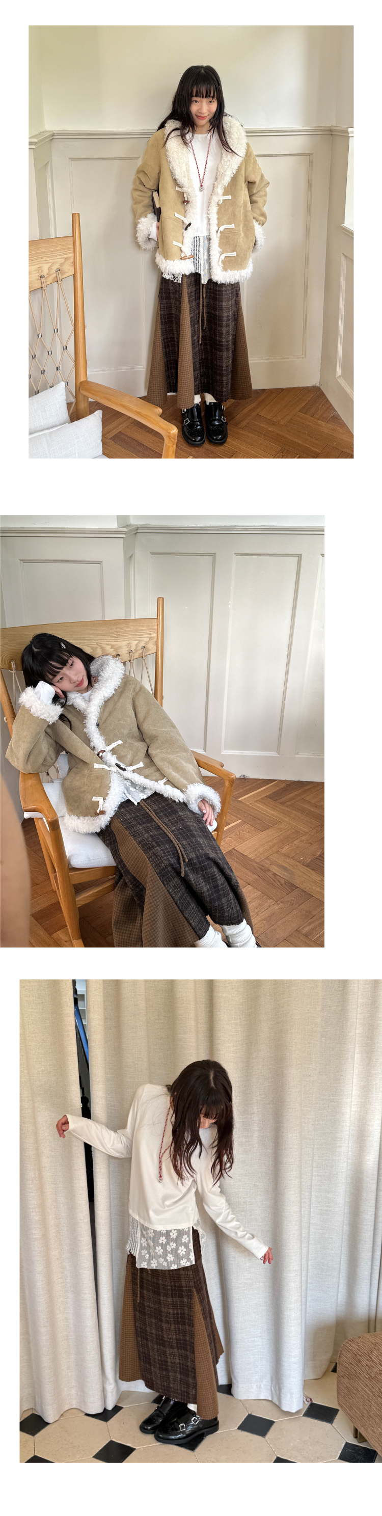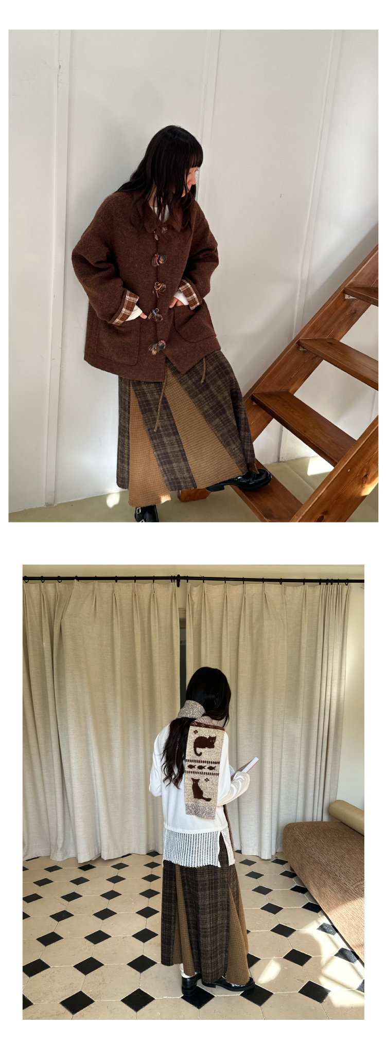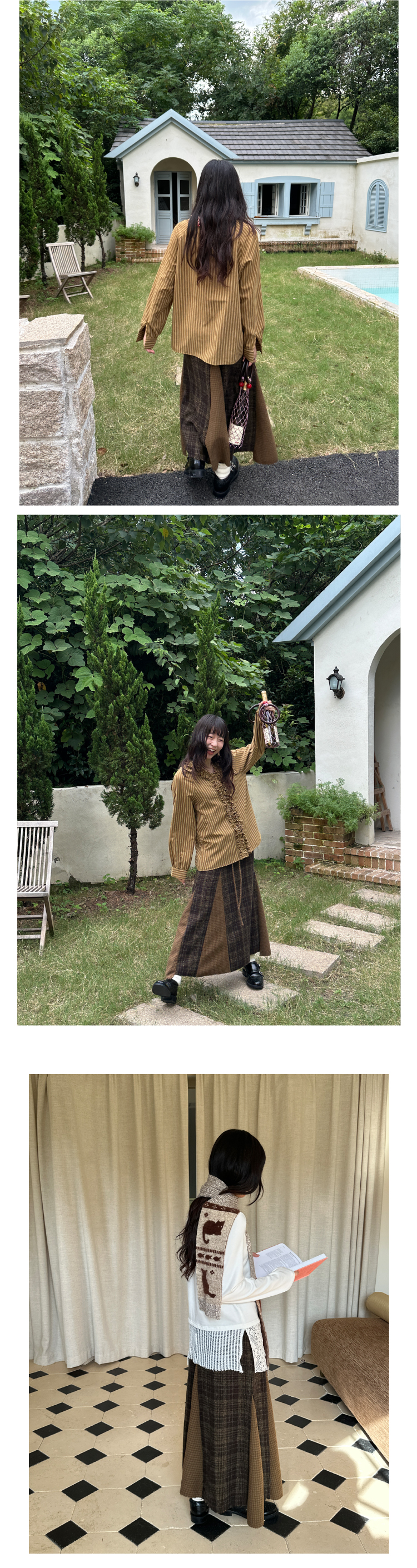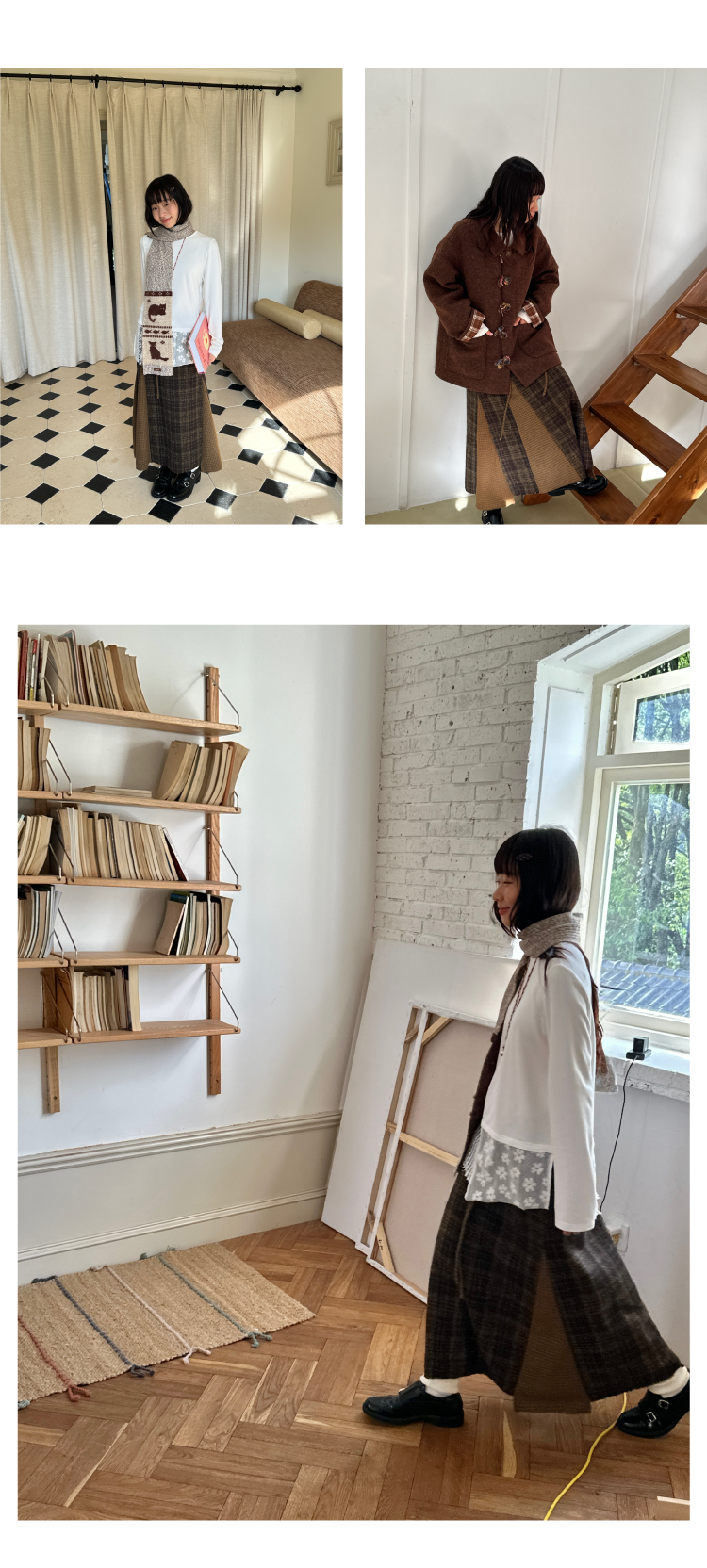 nothe Case布然/NC253201/「冬日午后」黄咖色格纹插片裙