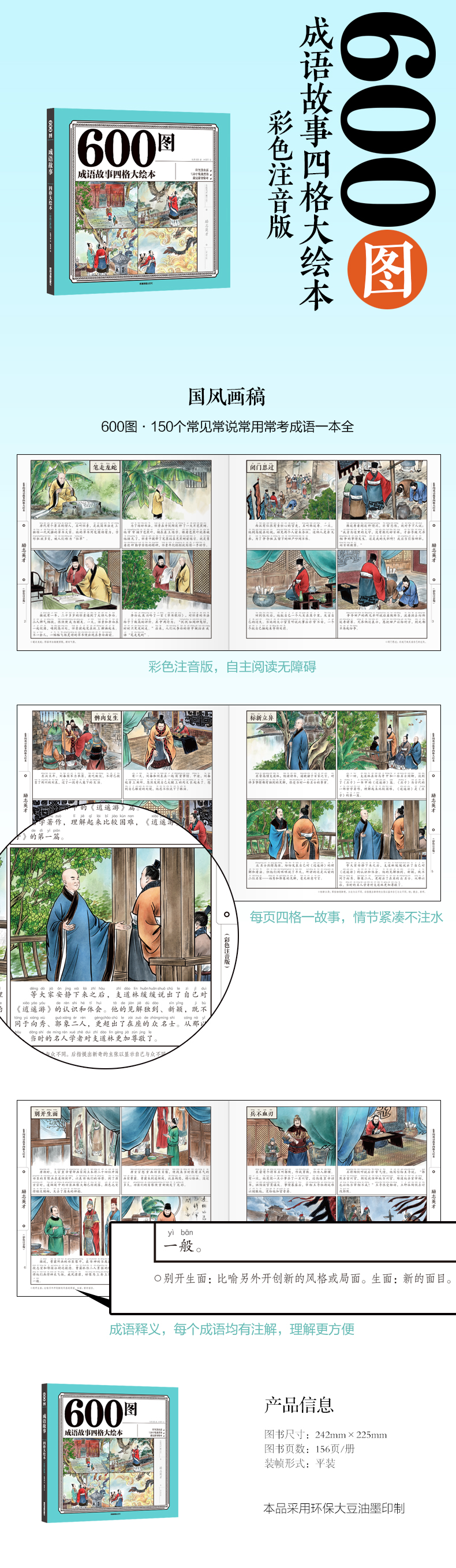 600图 成语故事四格大绘本 彩色注音注释版正版自主阅读无障碍四宫格阅读儿童文学6-8-7-9岁一二三四年级小学生课外阅读绘本故事书
