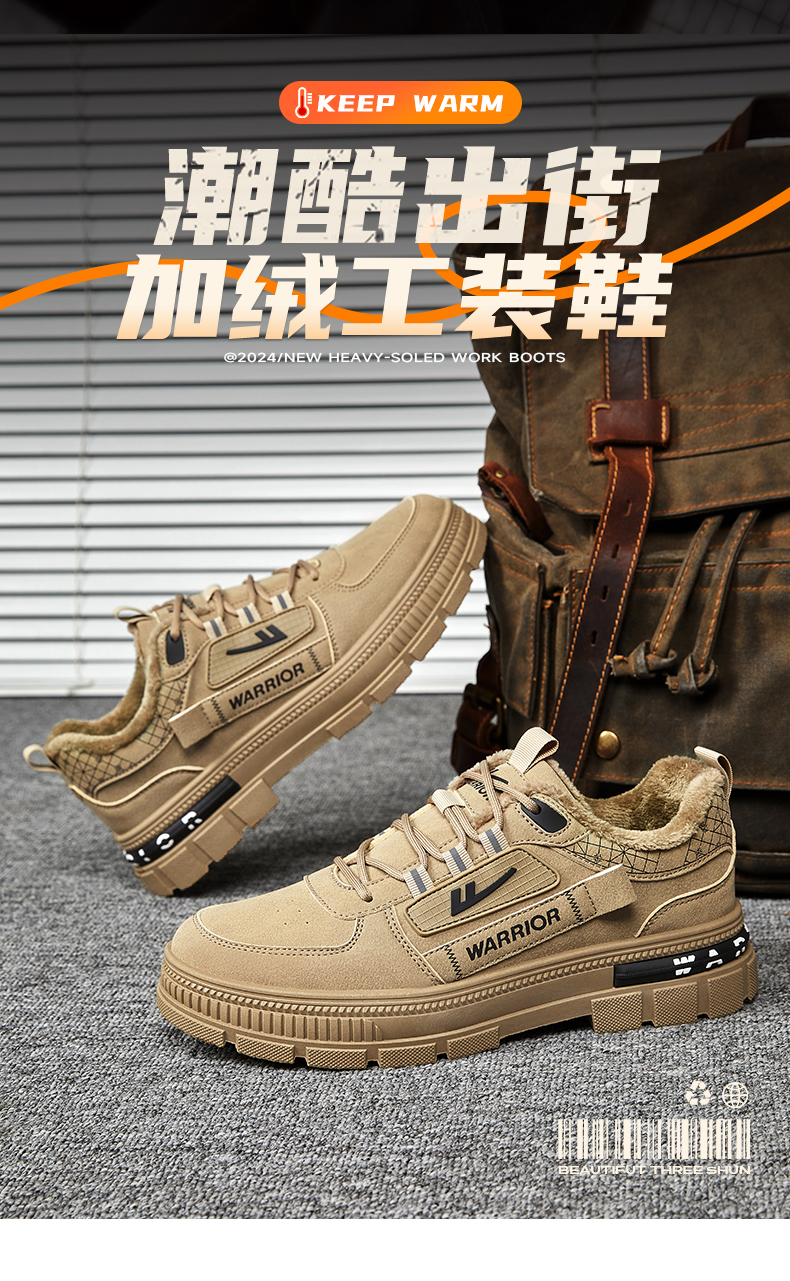 回力男鞋工装鞋2024新款秋冬加绒棉鞋户外工作鞋子男款男士休闲鞋