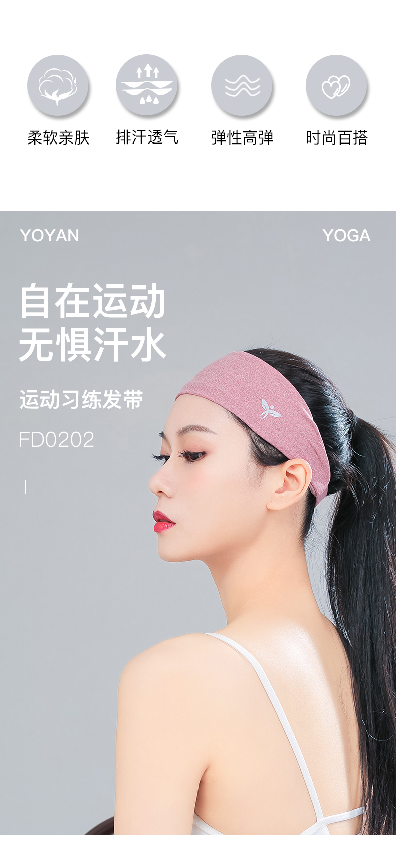 悠妍宽边瑜伽发带FD0202 运动吸汗束发止汗带