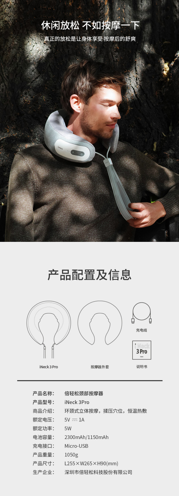 倍轻松iNeck3pro肩颈按摩器颈部按摩仪颈椎热敷
