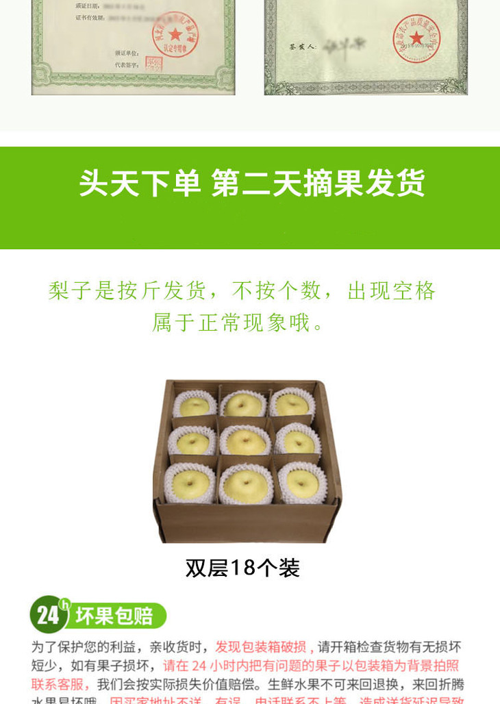 【一般贸易】新鲜梨子 te级皇冠梨 绿色无公害 当季水果晋州梨 净重8斤/箱(18个)