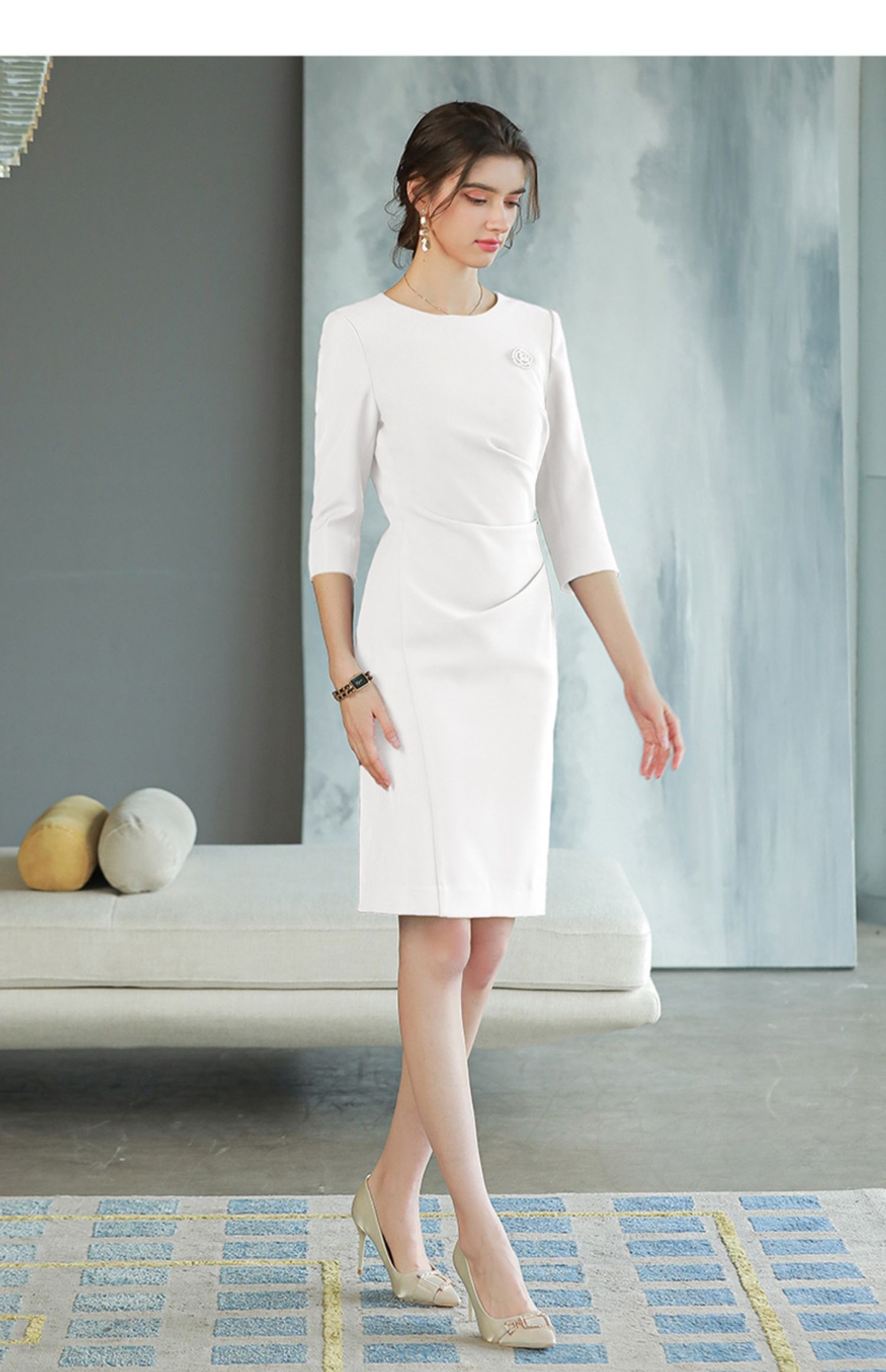 IWY/新款 气质白色西装连衣裙女七分袖春秋秋季H型Q775