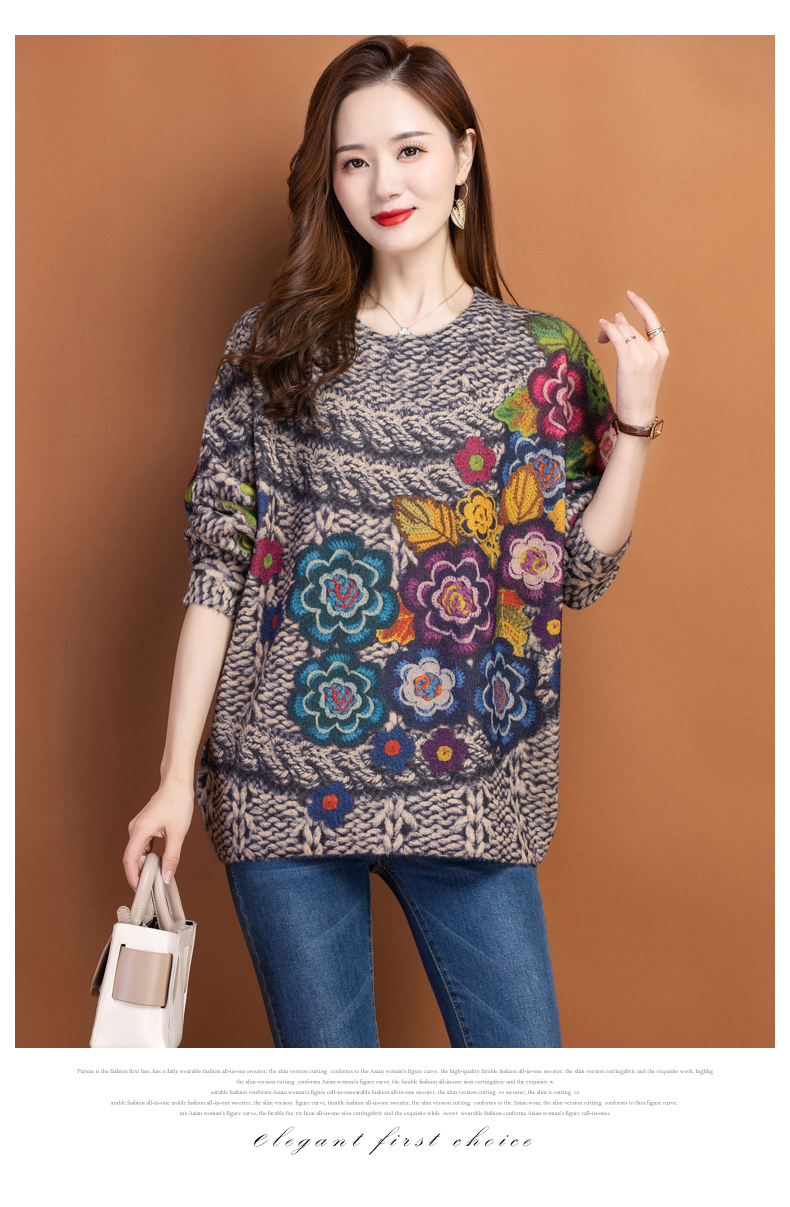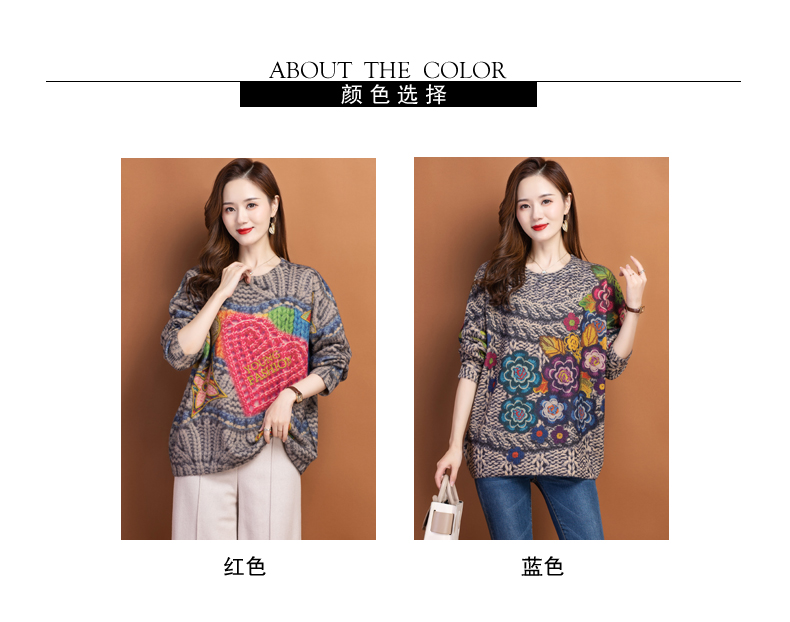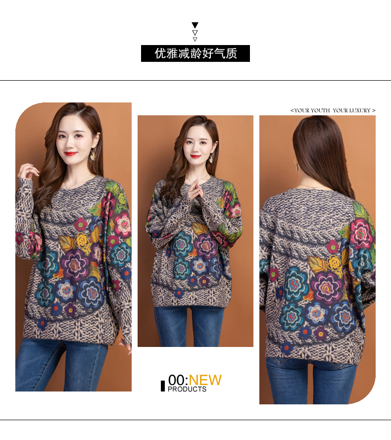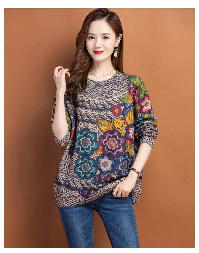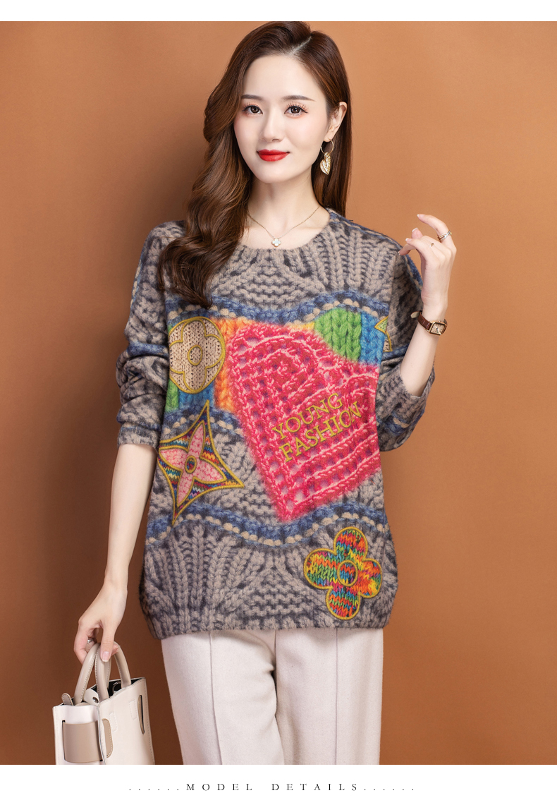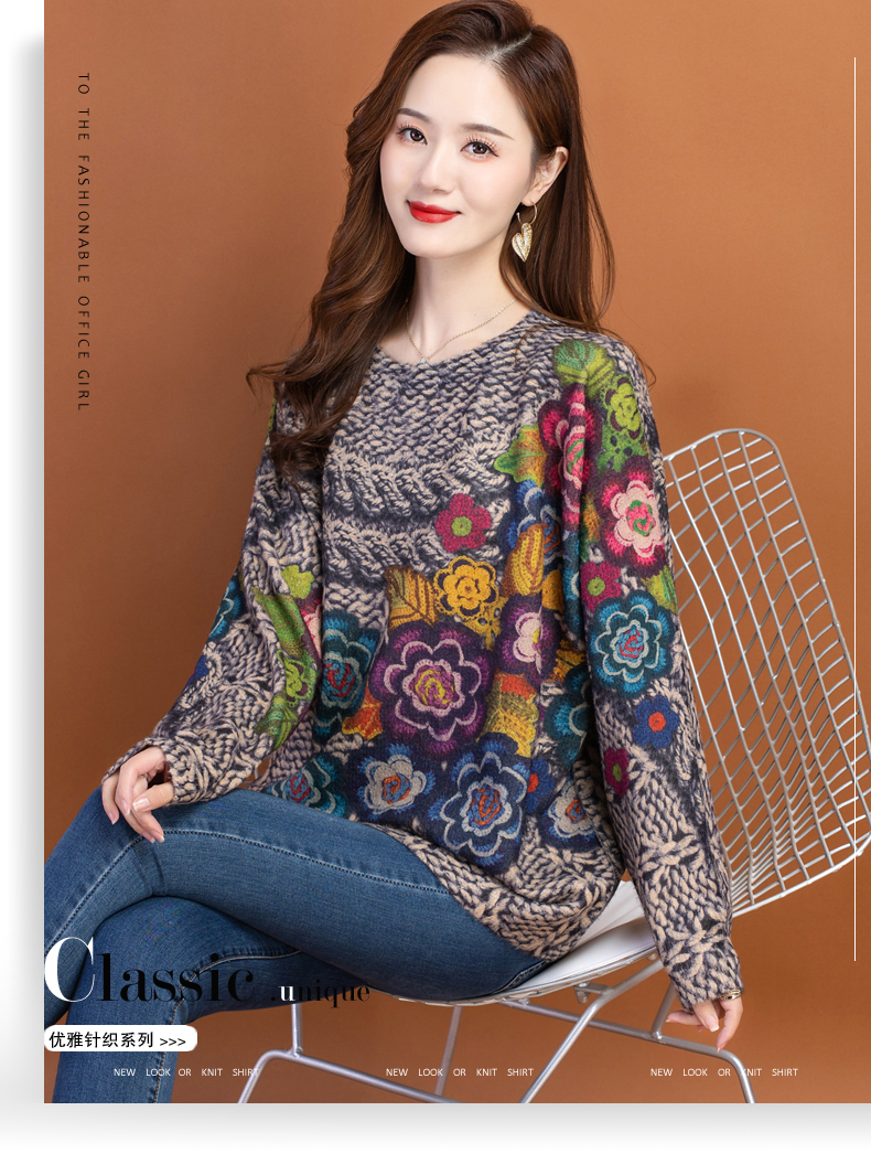圆领小印花粗线毛衣加厚针织打底衫CC-22129