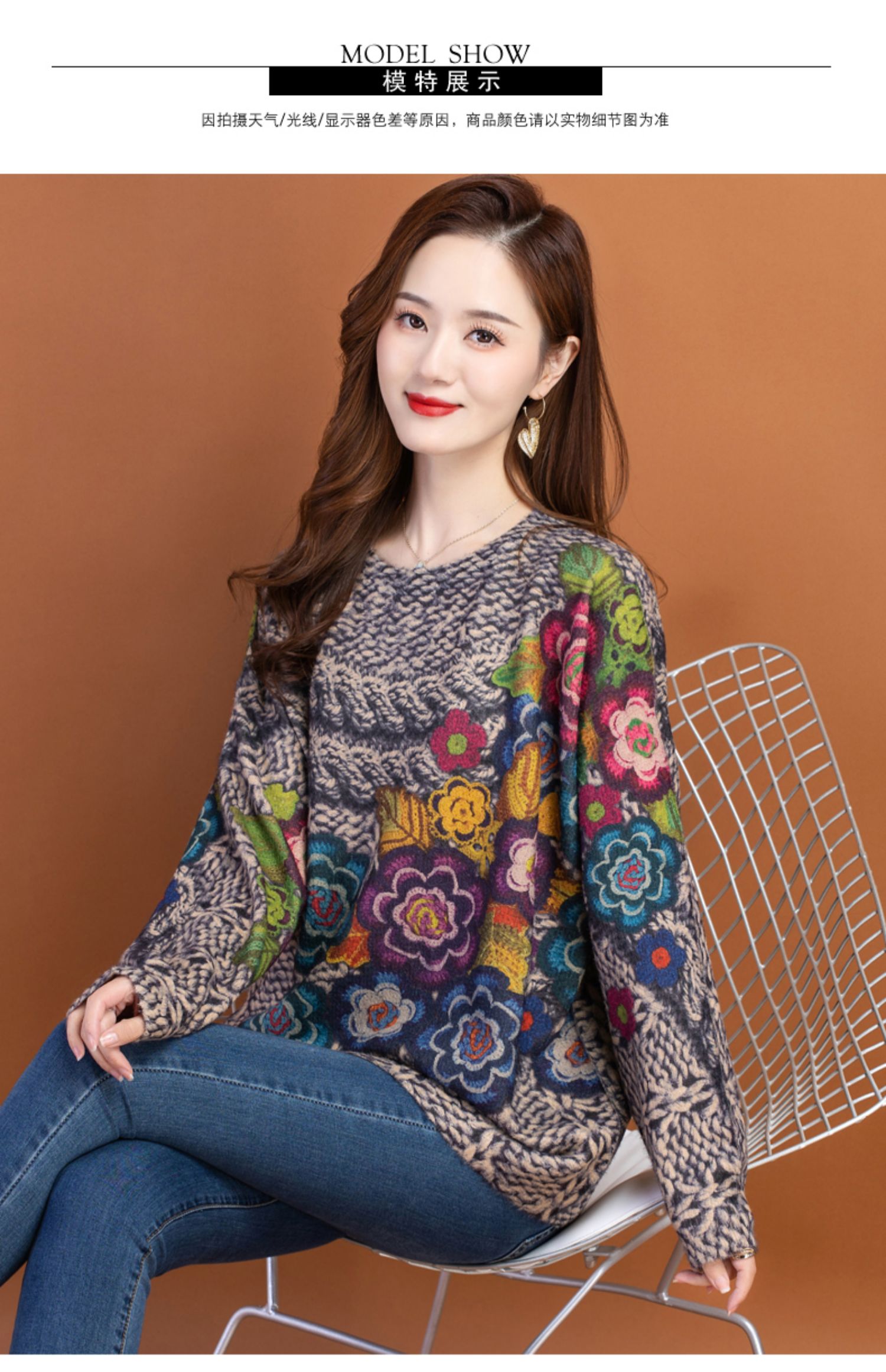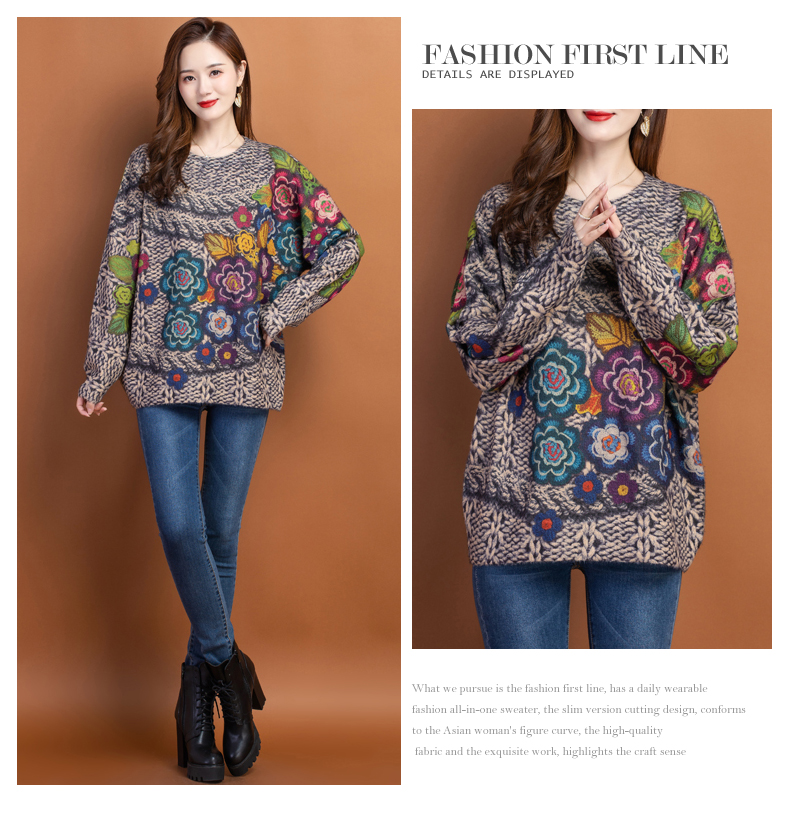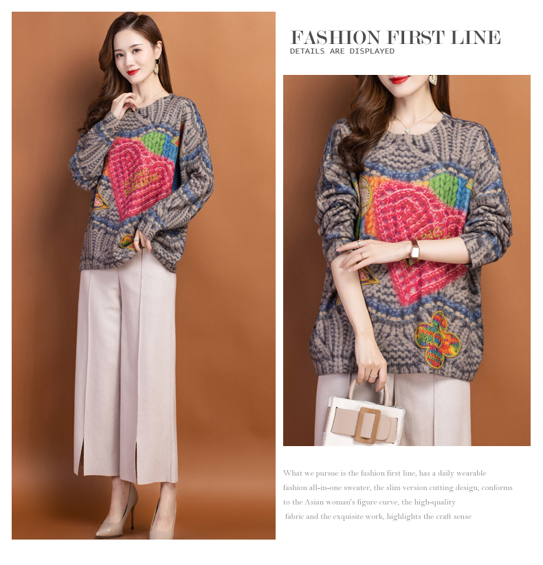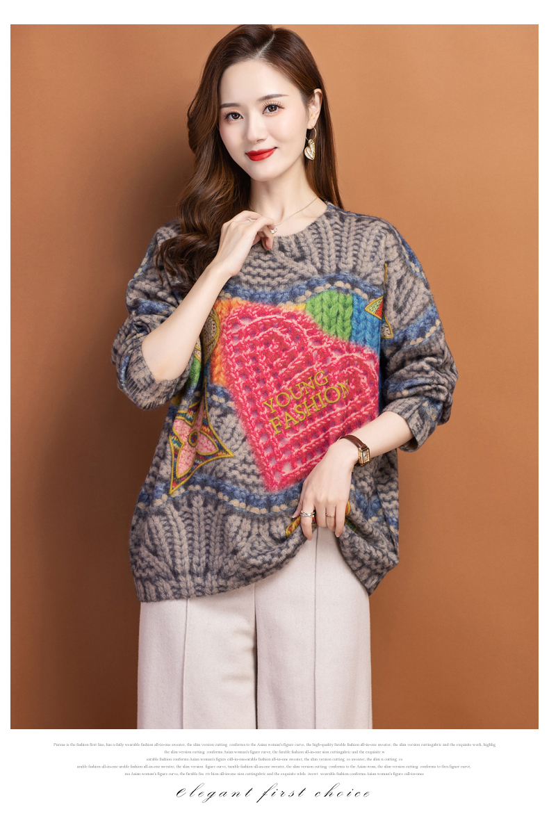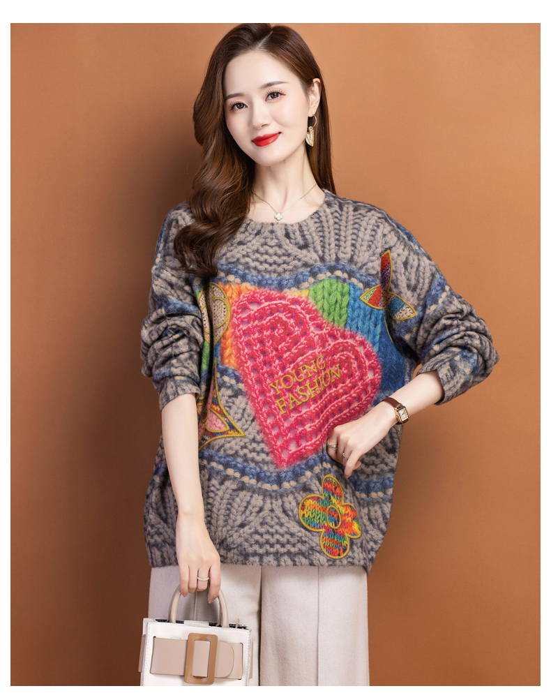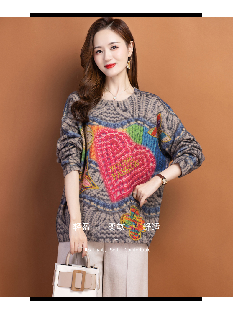 圆领小印花粗线毛衣加厚针织打底衫CC-22129