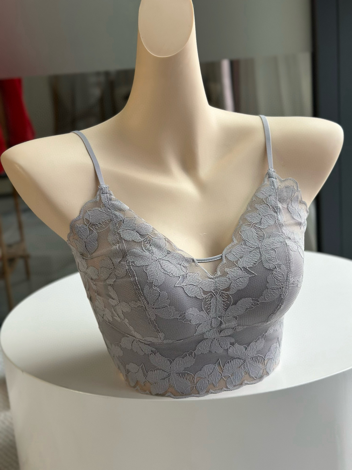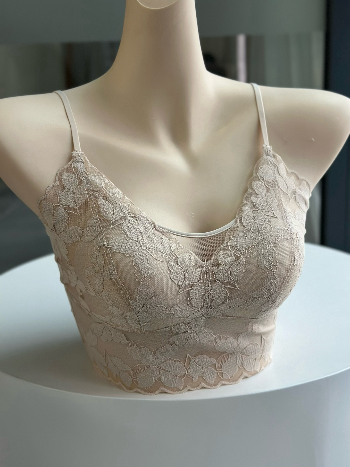 LP新款蕾丝法式兔耳朵固定可调节细肩带文胸背心 4/3罩杯型 薄杯0.5CM
