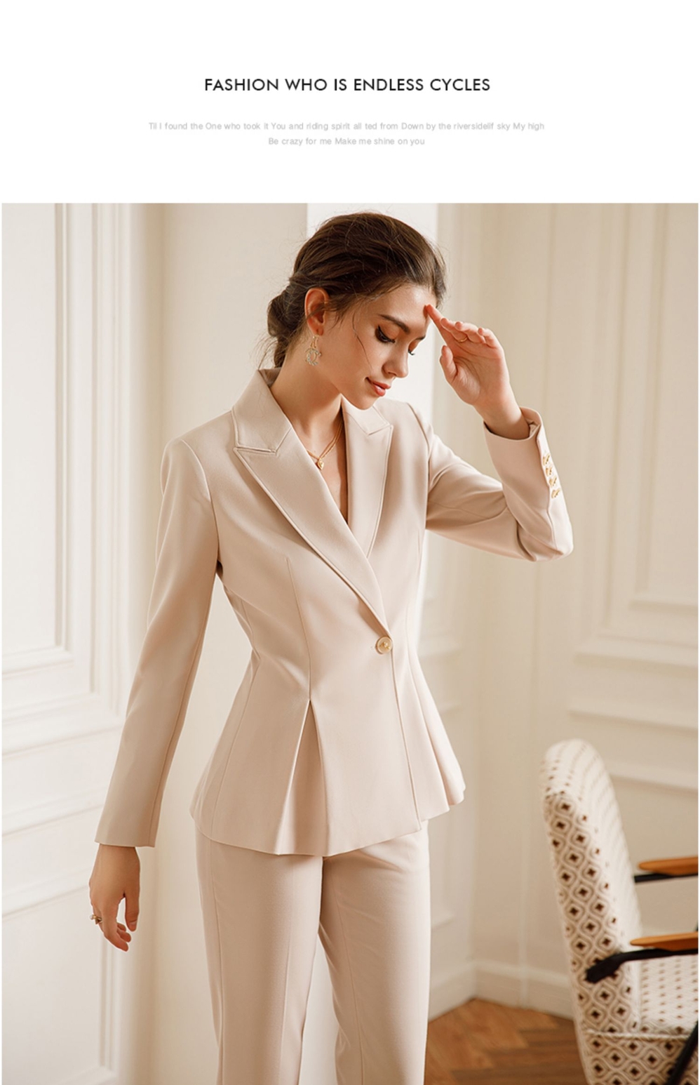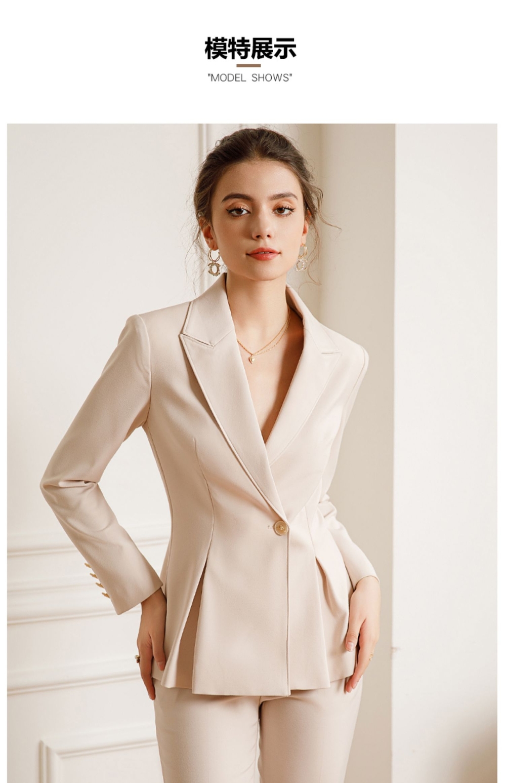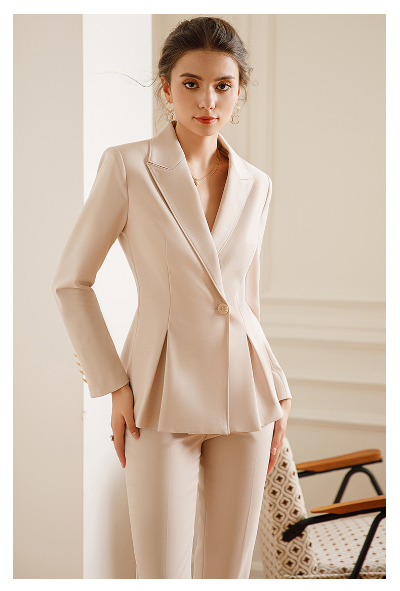 IWY/杏色高端职业西装套装女秋冬款杏色西服艺考正装主持人美容院工作服OL22CP115