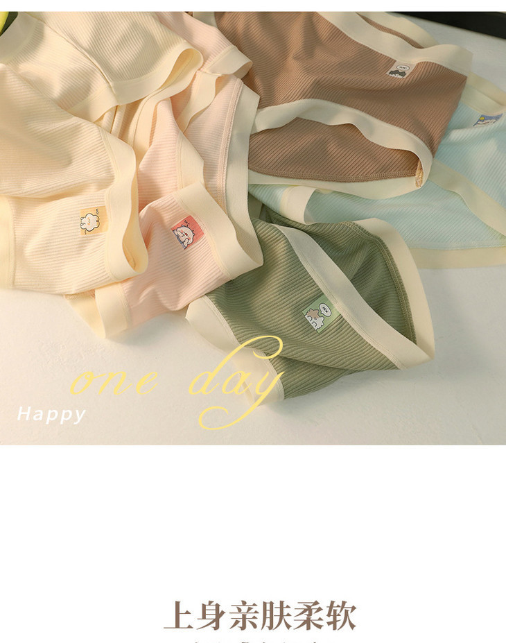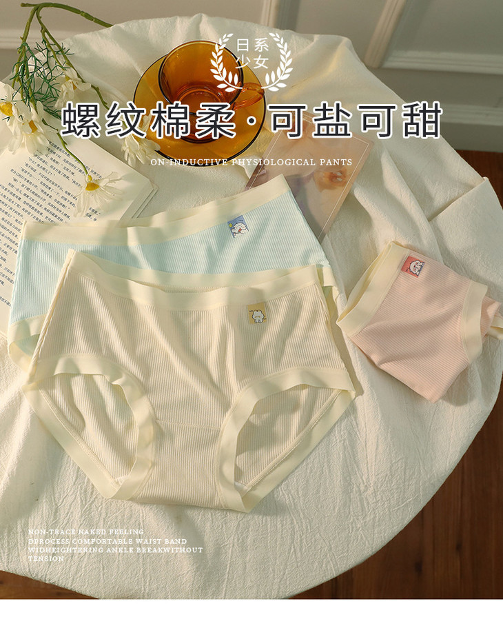 6条装!【日系少女·可盐可甜】新款日系内裤 螺纹棉柔纯棉抗jun全棉裆中腰无痕内裤