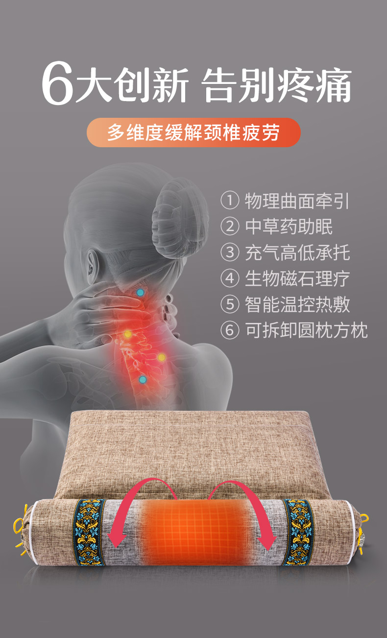 充气艾草发热温灸枕[【艾草热敷脖子护颈 改善睡眠 头疼等症状】