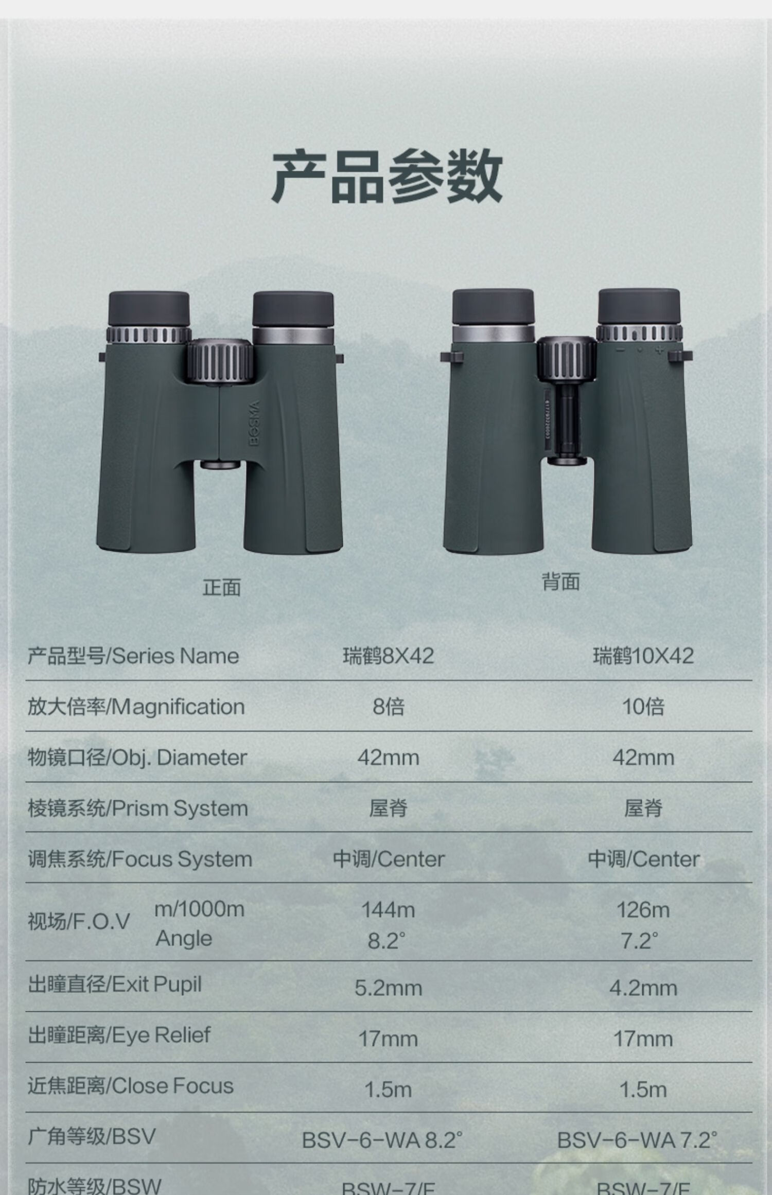 博冠(BOSMA)瑞鹤10X42ED望远镜高倍高清专业级双筒观鸟镜手机拍照微光夜视望远镜