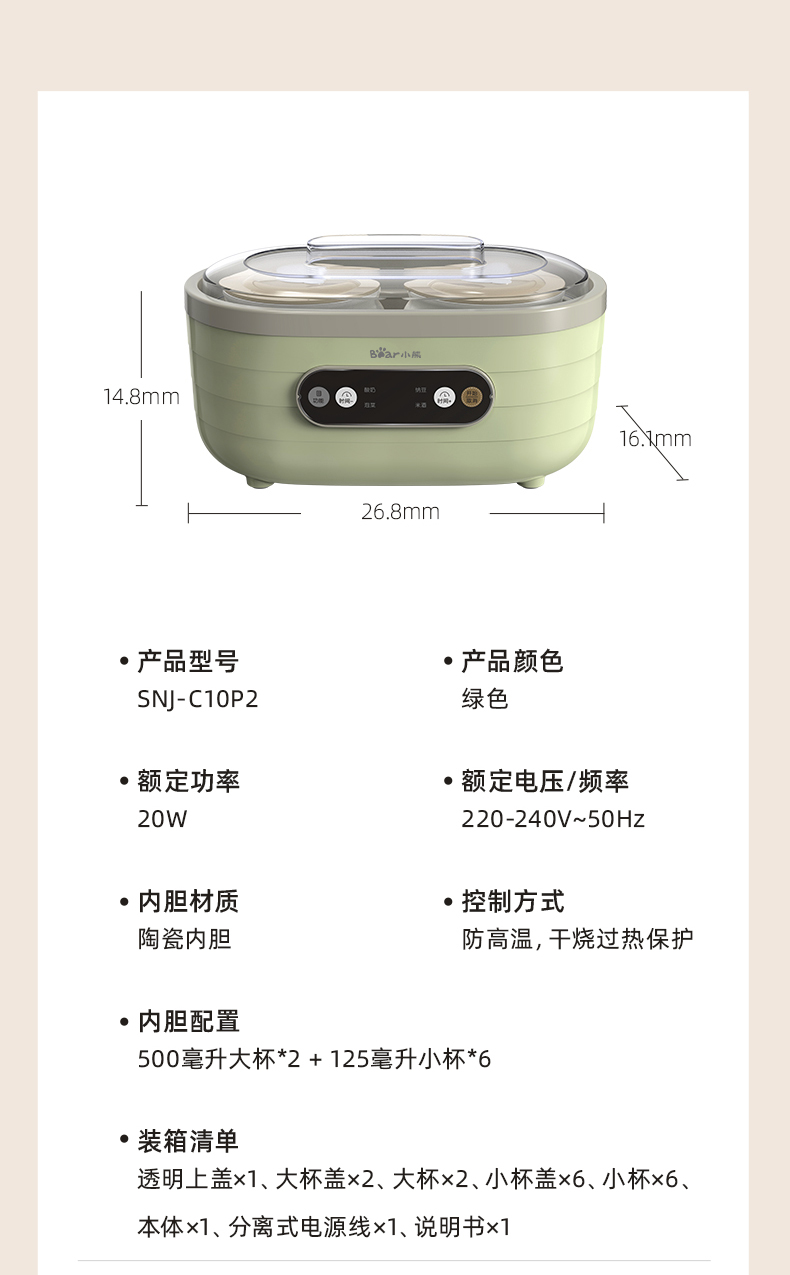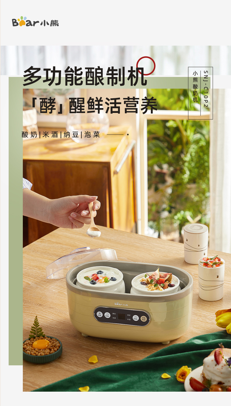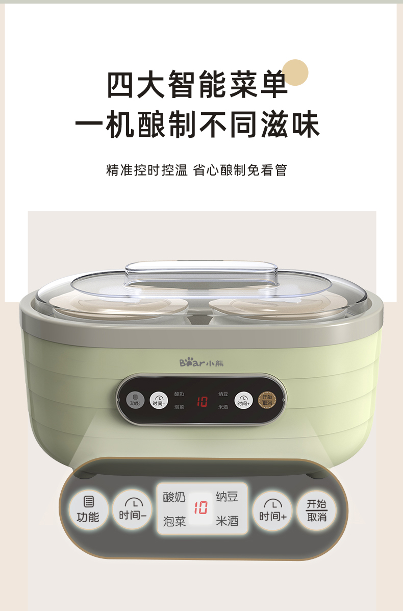 【小程序】小熊自制酸奶机家用小型全自动智能多功能纳豆机米酒机泡菜发酵机 SNJ-C10P2 绿色