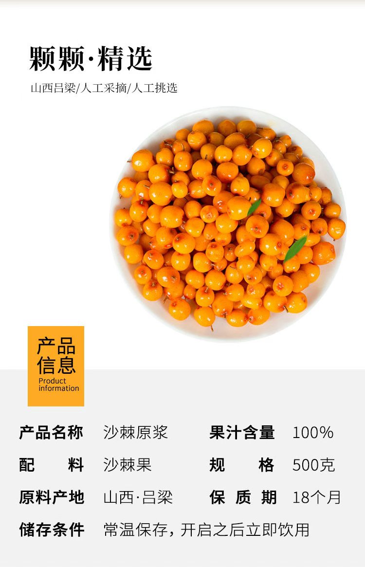 ² 79.9元10袋【配料只有沙棘】口感好的山西小果沙棘原浆 300/500g/袋 效期至26年12月 HM02-CRMM-SXSJ