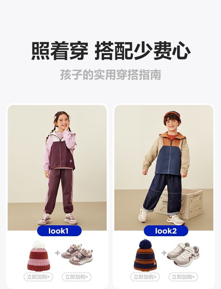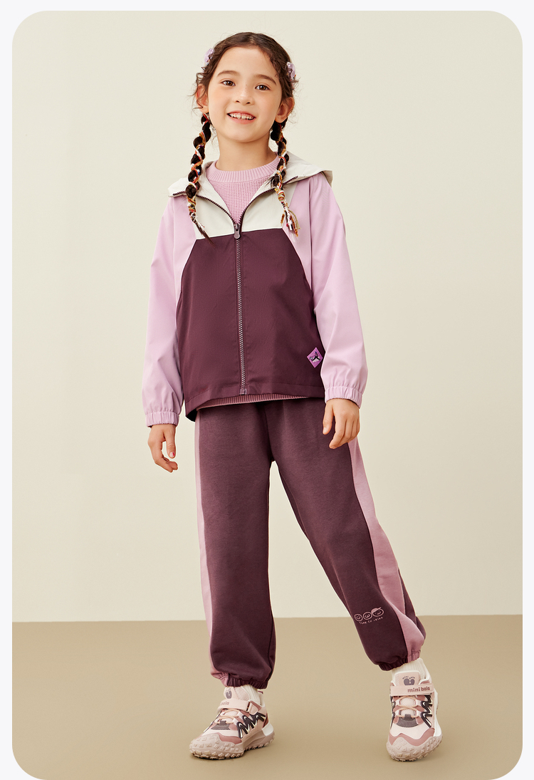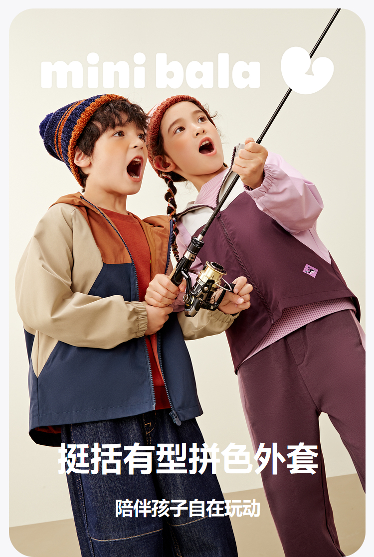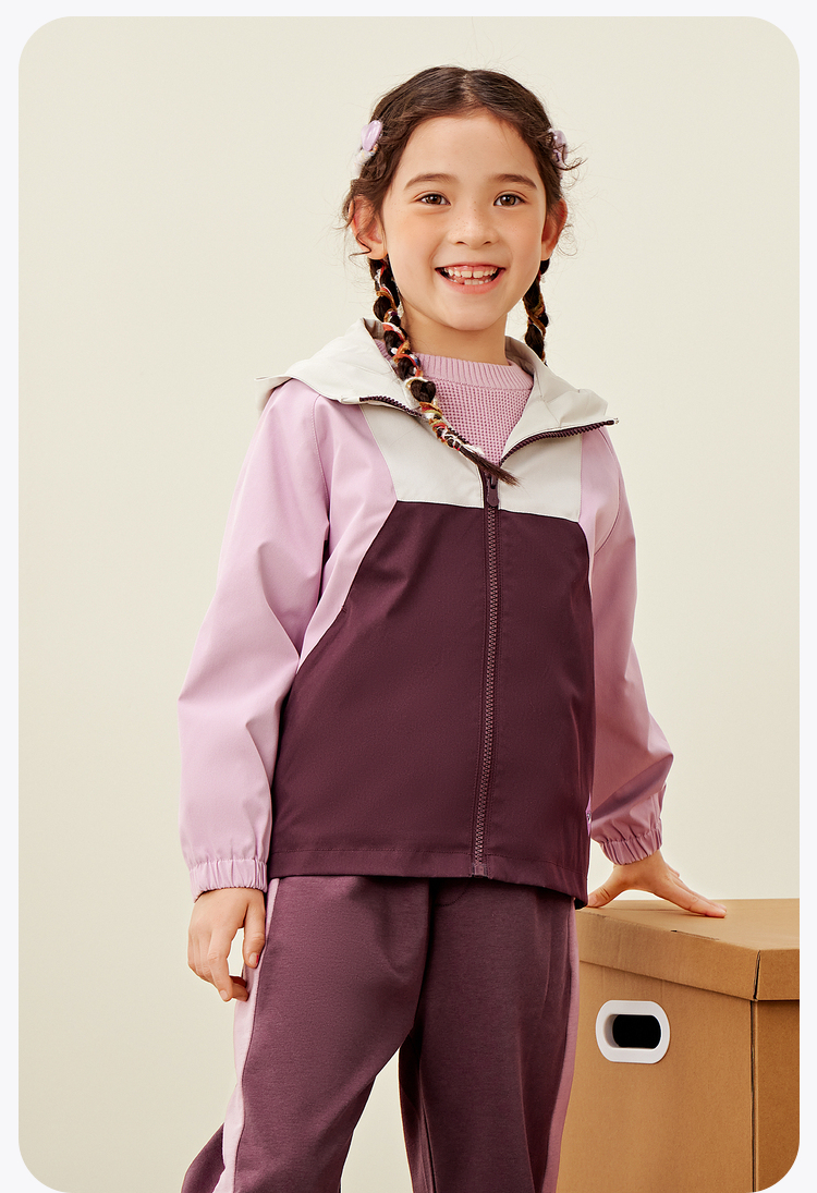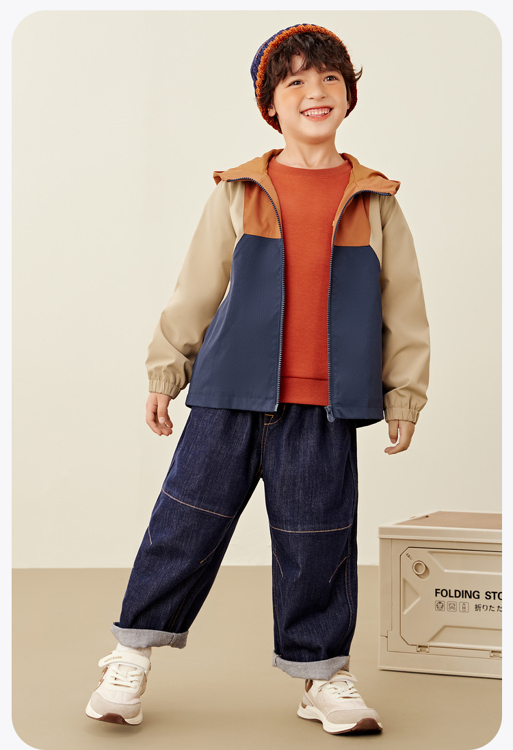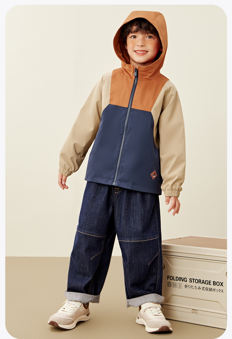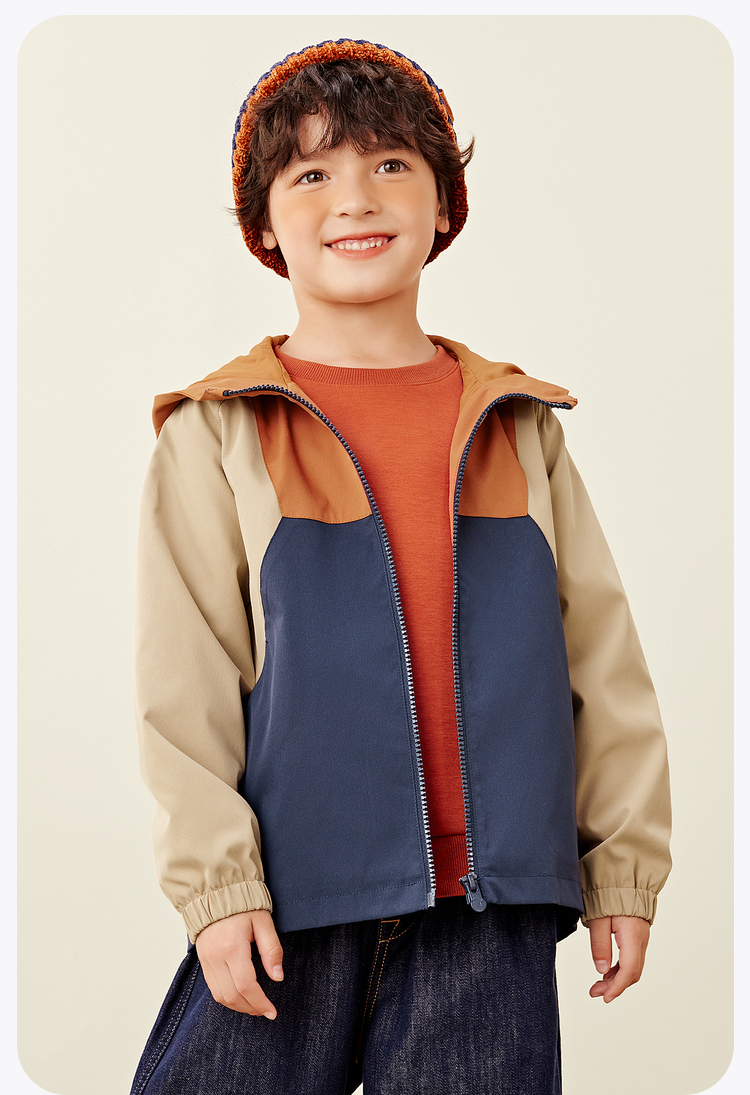 迷你巴拉秋季新款男女童拼色连帽外套宝宝保暖有型防水夹克