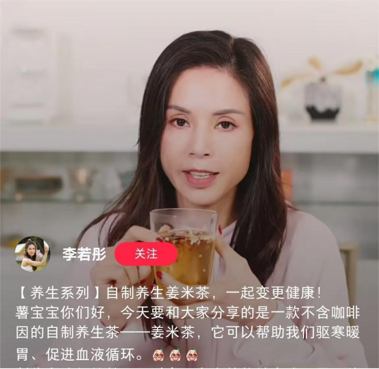 懂养生的,都会喜欢上姜米茶 无论是传统风的李子柒、小龙女李若彤、还是百年美女曾黎 他们的健康气色,都共同推荐姜米茶