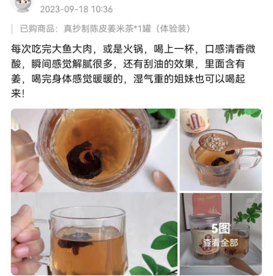 适合中国脾胃的天然饮品先暖陈皮姜米茶 祛湿见效快,消食刮油特厉害 成熟谷物的焦香味 包你喝一口就爱上了~ 好评超多的o🫰