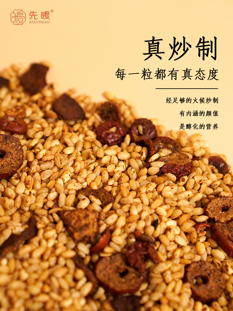 先暖家遵循“可有微利,不可售假”的祖训,产品货真价 ✅源自《圣济总录》 ,食材精调配,古法文火炒制而成 ✅配料干净,100%无添加,无防腐剂,无添加剂,无人工色素 ✅每天取两勺泡水喝,消食养胃、祛湿刮油,手心不出汗了!