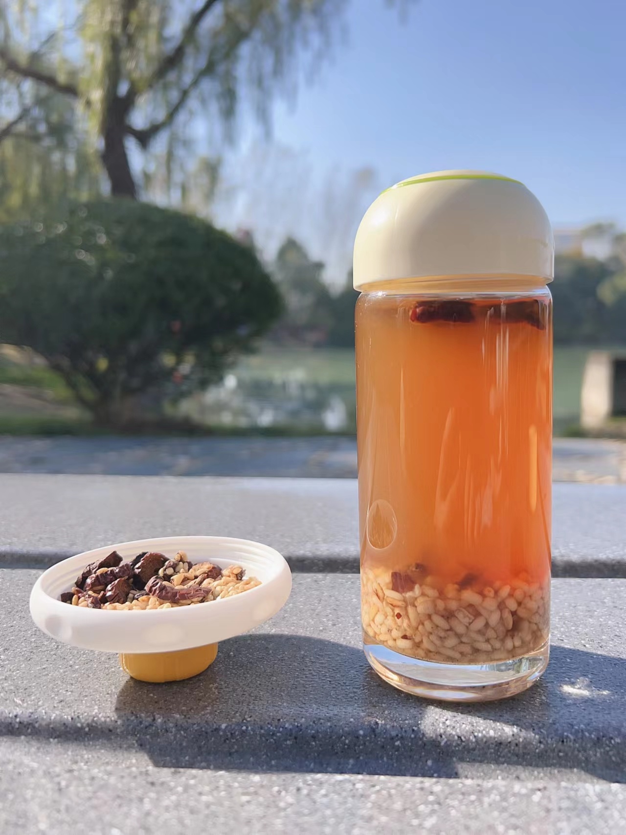 先暖陈皮姜米茶 推荐大家先焖泡3分钟再喝 看着金黄温暖的色泽一点点蕴出来,然后是谷物成熟的香气,暖烘烘裹住鼻尖🌿 喝下三口,脾胃会感觉很舒坦,像猫咪袒露肚子晒太阳的安闲‼️