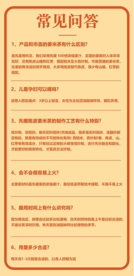 【产品配料】:大米、先暖浓缩姜汁、陈皮、山楂、红枣片