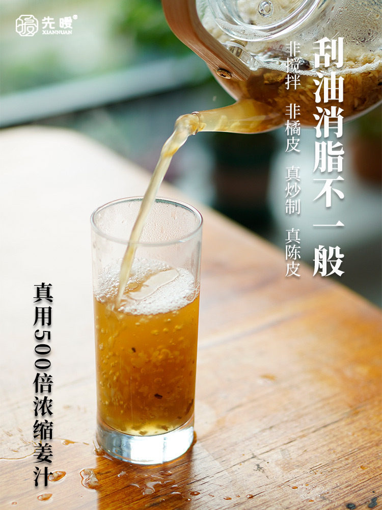🔺新会陈皮 陈皮可理气健脾、燥湿化痰‼️ 但市面上的姜米茶,大多采用橘子皮来替代陈皮。橘皮是果皮,仅用作调味可除腥膻而已。 ⚠️先暖家坚持做品质 敢承诺:真用陈皮,绝不用橘皮 只为了每一口味道的醇香~