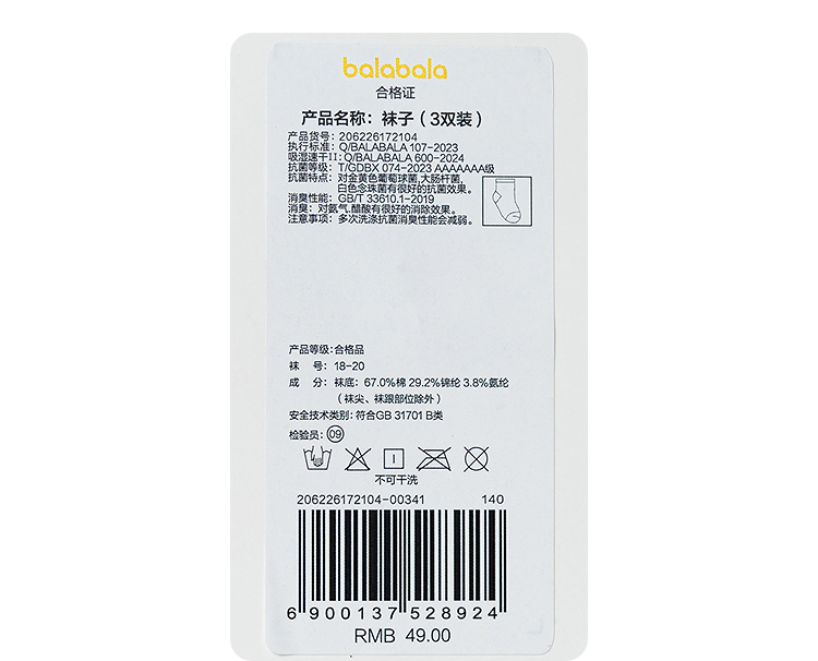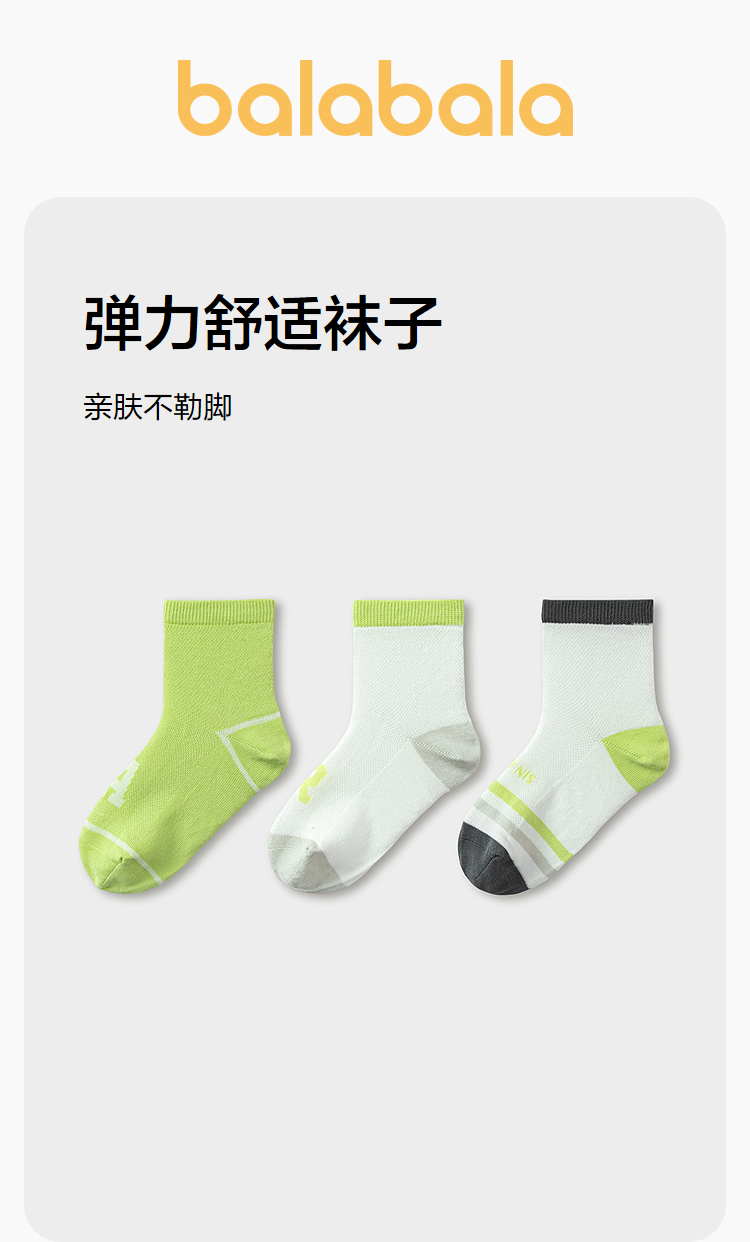 【商场同款】巴拉巴拉儿童袜子夏新款网眼透气男童速干棉袜三双装