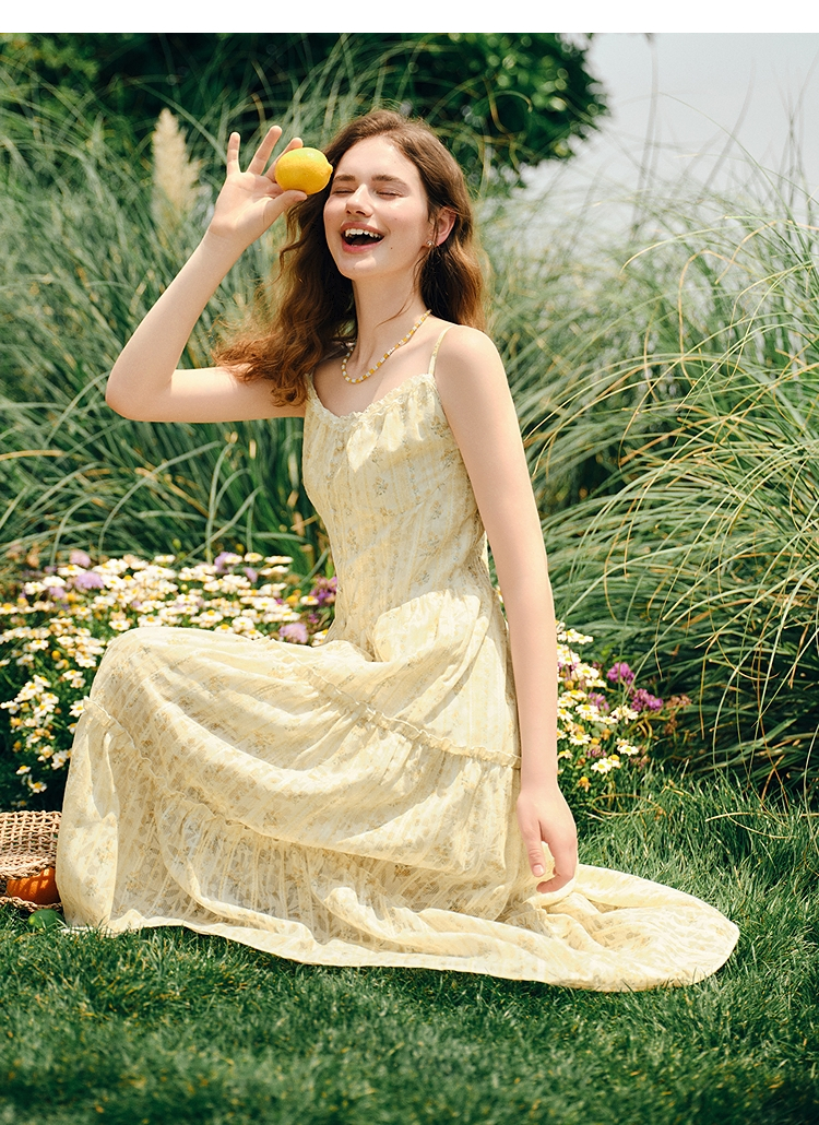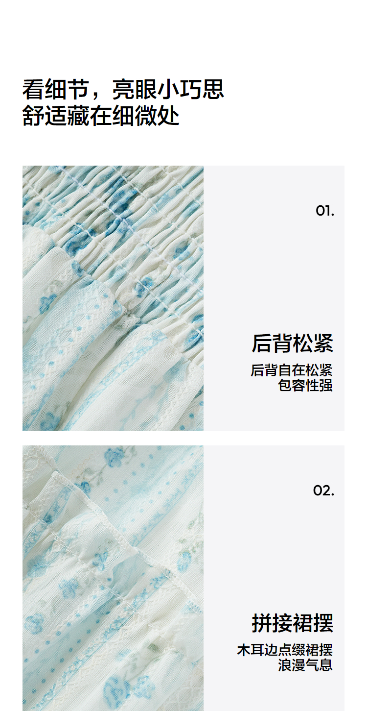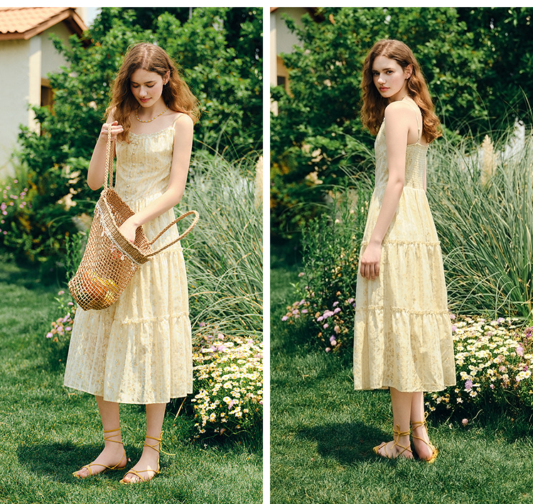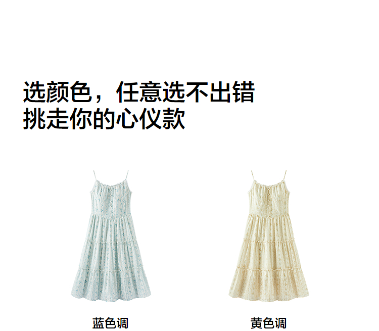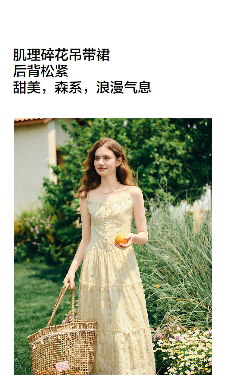 森马连衣裙女设计感肌理浪漫2025新款夏季甜美花边碎花吊带裙森系