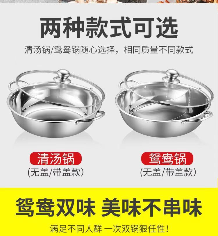 【激光高密集电焊❗️不渗漏不串味】不锈钢火锅小肥羊鸳鸯锅特厚清汤锅二味隔锅双耳带盖汤锅家用商用。ja